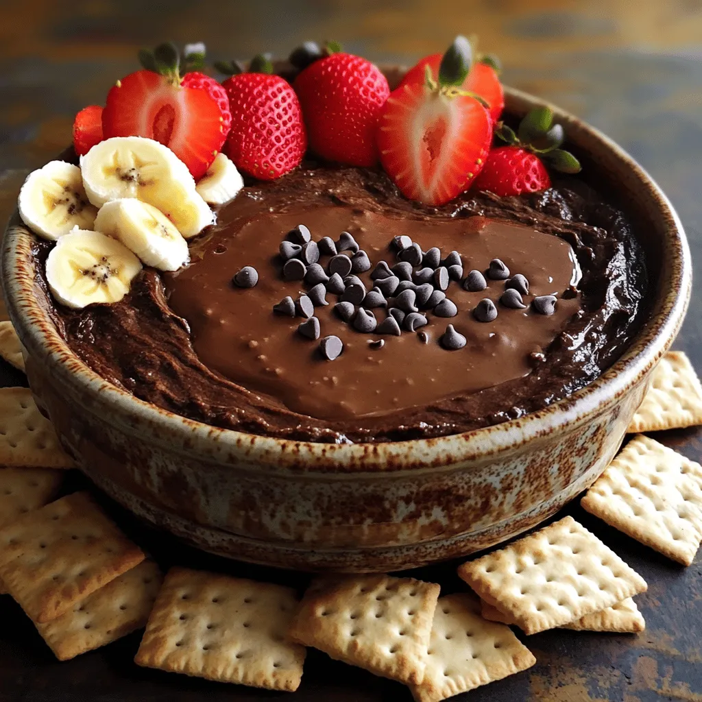 How you serve the dip can change the vibe of your gathering. For a cozy feel, use a rustic ceramic bowl. Top it with a sprinkle of chocolate chips and fruit pieces. If you want individual servings, scoop the dip into small cups. This makes it easy for guests to grab and enjoy. Arrange fresh fruits and graham crackers around the dip for a fun and inviting presentation.