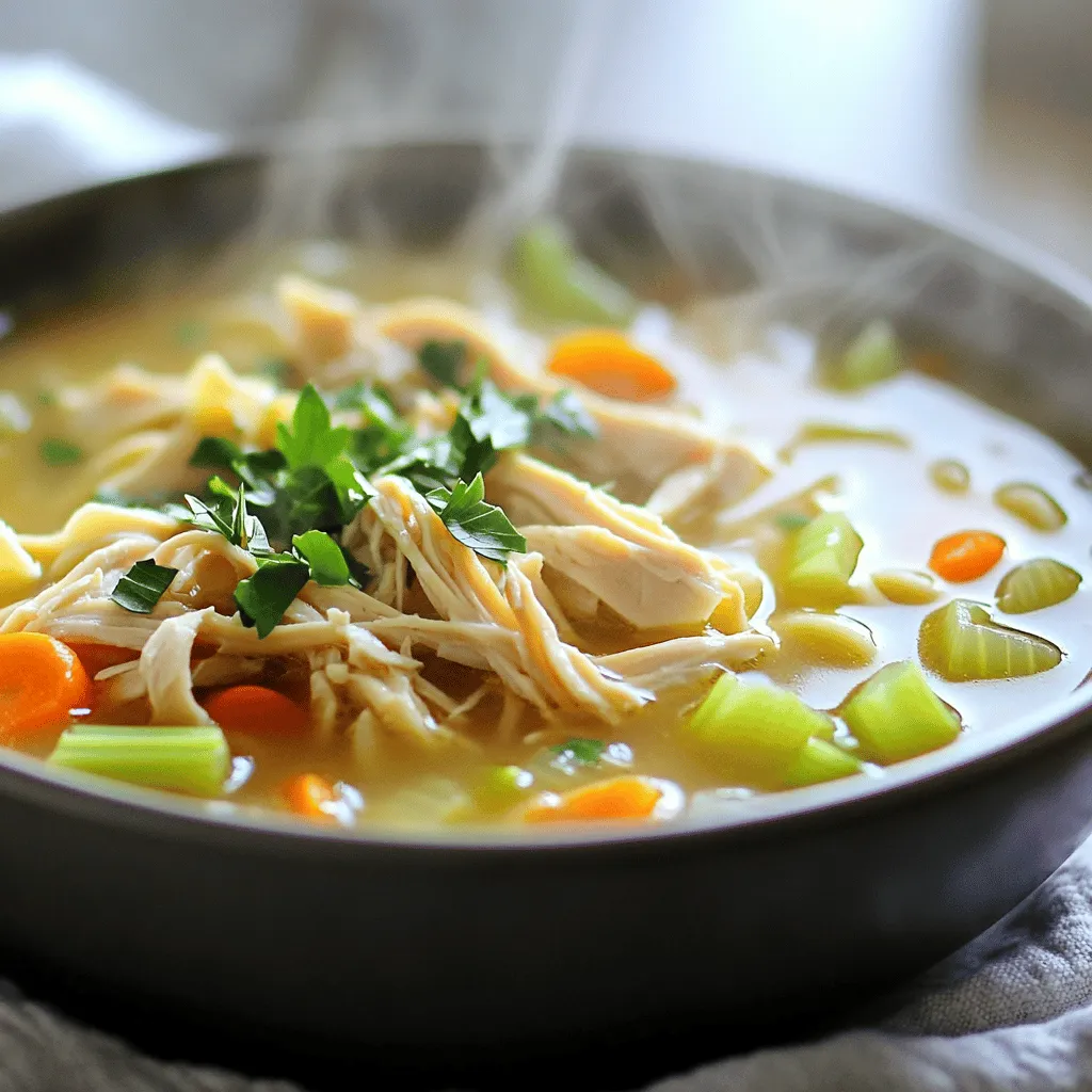 To reheat your soup, you can use the stove or microwave. On the stove, heat it gently over medium heat. Stir often to avoid burning. If using the microwave, heat in short bursts, stirring in between. This helps keep the noodles from getting too soft. Always check the temperature before serving. You want it hot but not boiling. Enjoy your comforting bowl of chicken noodle soup!