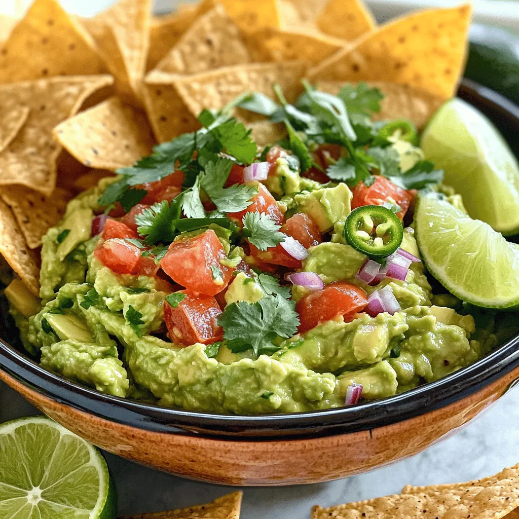 ![- Ripe Avocados - Tomato - Red Onion - JalapeΓ±o - Garlic - Lime - Fresh Cilantro - Seasoning (Salt, Pepper, Smoked Paprika) To make the best guacamole, start with ripe avocados. Look for ones that yield slightly when you press them. This means theyβre ready to mash. Next, grab a fresh tomato. A vine-ripened tomato adds great flavor. Red onion offers a sweet bite. Chop it finely to mix well. For heat, use jalapeΓ±o. Remove the seeds for less spice. Garlic adds depth. Fresh minced garlic is best. You need a lime for its juice. It brightens the taste and keeps the avocado green. Fresh cilantro gives a nice herbal note. Finally, season with salt, pepper, and smoked paprika for a smoky twist. The best avocados for guacamole are Hass avocados. Their dark, bumpy skin means they are creamy and flavorful. Choose avocados that are firm but yield to gentle pressure. This means they are ripe and ready to use. Fresh ingredients always taste better in guacamole. Fresh avocados, tomatoes, and herbs give vibrant flavors. However, if fresh isnβt available, frozen options can work in a pinch. Just make sure to thaw them properly and drain any excess water. This helps keep your guacamole thick and tasty. For the full recipe, check out the Avocado Fiesta Guacamole π₯. Start with three ripe avocados. Look for avocados that feel soft but not mushy. Cut each avocado in half and remove the pit. Use a spoon to scoop the flesh into a bowl. This step is key for a creamy texture. You can mash them as smooth or chunky as you like. Keep in mind, the more you mash, the creamier it gets. Once the avocados are ready, it's time to mix in the other ingredients. Add one medium diced tomato, one-fourth cup of finely chopped red onion, and one minced jalapeΓ±o. Don't forget two cloves of minced garlic for that extra kick! Next, squeeze the juice from one lime into the bowl. Lime adds brightness to your guacamole. Finally, sprinkle in salt, black pepper, and smoked paprika if you want a hint of smokiness. Now, give everything a good stir to combine the flavors. It's smart to taste your guacamole at this point. If it needs more zing, add more lime juice or salt. Remember, fresh ingredients can change the taste. Let it rest for about 10-15 minutes. This waiting time lets the flavors mix well. When you serve it, garnish with whole cilantro leaves and lime wedges for a nice touch. For the full recipe, check out the Avocado Fiesta Guacamole section. Enjoy your creation! To get the right texture, start with ripe avocados. They should be soft but not mushy. Use a fork or potato masher to mash them. If you like it smooth, mash more. For a chunkier guacamole, mash less. Add diced tomatoes and onions to give it a nice bite. Mix gently to keep some pieces whole. Fresh ingredients make the best guacamole. Use ripe avocados, fresh lime juice, and crisp cilantro. Adding minced garlic boosts the taste. A little salt and pepper enhance flavors. If you want some heat, add jalapeΓ±o. Letting your guacamole sit for 10-15 minutes helps the flavors mix well. The time lets the lime juice soak into the avocados. One mistake is using overripe avocados. They can make your guacamole taste bad. Another common error is not tasting as you go. Always check the flavor. Too much lime juice can make it sour, so add it slowly. Lastly, avoid browning by covering it tightly. Use plastic wrap pressed directly on the surface. For more details, check the Full Recipe. {{image_2}} You can make your guacamole stand out with fun add-ins. Here are two tasty options: - Mango or Pineapple Guacamole: Dicing fresh mango or pineapple adds a sweet twist. The fruit pairs well with the creamy avocado. Just mix in about one cup of diced fruit for a fruity delight. - Bacon or Feta Cheese: Crumbled bacon gives a salty crunch. Feta cheese adds a tangy flavor. Use about 1/2 cup of either for a savory kick. If you love heat, add more spice to your guacamole. You can mix in chopped serrano or habanero peppers. Start with a small amount and taste as you go. You can also add hot sauce for an extra kick. This makes your guacamole fiery and exciting! To make your guacamole vegan, simply skip dairy add-ins like feta cheese. For nut allergies, this recipe is already safe. Always check your ingredients, especially with processed items. You can enjoy guacamole without worry. For more flavor ideas, check out the Full Recipe! To keep guacamole fresh, store it in an airtight container. Press plastic wrap directly onto the surface of the guacamole. This method limits air exposure. If you have leftovers, you can also add a layer of lime juice on top. The acid helps preserve the color and taste. Guacamole can brown quickly. To slow this down, use lime juice as mentioned. You can also sprinkle a little salt on top. Another trick is to add a thin layer of water over the guacamole before sealing it. When youβre ready to eat, pour off the water. You can freeze guacamole for later use. First, prepare the guacamole as usual. Then, place it in a freezer-safe bag. Squeeze out as much air as possible before sealing. It will keep for about three months in the freezer. When youβre ready to enjoy it, thaw it in the fridge overnight before serving. Just remember, the texture may change slightly after freezing, but the flavor will still be great! To make homemade guacamole, start with ripe avocados. Cut them in half, remove the pit, and scoop the flesh into a bowl. Mash the avocados to your liking, whether smooth or chunky. Then, mix in diced tomato, chopped red onion, minced jalapeΓ±o, and minced garlic. Squeeze fresh lime juice over the mix and add chopped cilantro. Season with salt, black pepper, and smoked paprika if you want a smoky taste. Stir gently until all ingredients are combined. Let it sit for about 10-15 minutes for the best flavor. For the full recipe, check the [Full Recipe]. Guacamole pairs well with many dishes. Serve it with tortilla chips for a classic snack. Fresh vegeta
