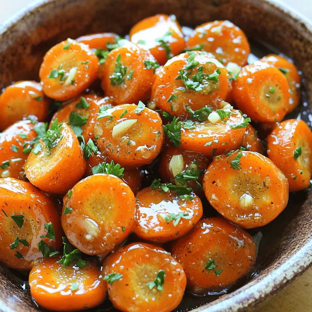 To make honey garlic glazed carrots, you need the following items: - 1 lb baby carrots (or regular carrots, peeled and sliced) - 3 tablespoons honey - 2 tablespoons olive oil - 3 cloves garlic, minced - 1 tablespoon soy sauce (low sodium preferred) - 1 teaspoon fresh ginger, grated - Salt and pepper to taste - Fresh parsley, chopped (for garnish) These ingredients work together to create a sweet and savory flavor that enhances the carrots. When choosing carrots, look for these signs of freshness: - Bright color: Choose carrots that are vibrant and rich in color. - Firm texture: They should feel hard and not bend easily. - No blemishes: Avoid carrots with soft spots or signs of decay. Fresh carrots will give you the best taste and crunch in your dish. If you don't have some ingredients on hand, here are a few swaps you can try: - Maple syrup instead of honey for a different sweet flavor. - Coconut oil can replace olive oil for a unique taste. - Garlic powder can work if you are out of fresh garlic. These changes can still give you tasty honey garlic glazed carrots. For the complete recipe, check out the Full Recipe section. Start by washing your carrots. If you use regular carrots, peel them first. Cut them into even pieces. This helps them cook at the same rate. Baby carrots can go right into the bowl. They look cute and cook quickly. Aim for uniform size for even roasting. In a large bowl, combine honey, olive oil, minced garlic, soy sauce, and grated ginger. Use a whisk to mix them well. This creates a sweet, sticky glaze. The garlic adds a nice kick, while the ginger brings warmth. Make sure everything blends together nicely. Preheat your oven to 400°F (200°C). Line a baking sheet with parchment paper. This makes cleanup easy. Place the carrots on the sheet in a single layer. Pour any leftover glaze over the carrots. Roast for 25 to 30 minutes. Toss them halfway through for even cooking. The carrots should come out tender and caramelized. Finish by seasoning with salt and pepper. Garnish with fresh parsley for a pop of color. This dish is a sweet and savory delight. Check the full recipe for more details. For the best honey garlic glazed carrots, start with fresh, crisp carrots. Baby carrots work great, but regular ones can shine too. If you use regular carrots, slice them evenly for even cooking. This ensures every piece cooks at the same rate. Coat the carrots well in the honey-garlic mixture. This glaze is key to that sweet and savory flavor. Toss them halfway through roasting for a nice caramelization. Adjust the sweetness to match your taste. If you like it sweeter, add a bit more honey. If you prefer a stronger garlic flavor, add more minced garlic. A dash of soy sauce brings a nice salty balance. You can also add fresh ginger for a zing. Just remember to taste as you go. This way, you can find that perfect blend of flavors. Honey garlic glazed carrots pair well with many dishes. Serve them alongside roasted meats for a complete meal. They also shine with grilled fish or chicken. For a vegetarian option, try them with quinoa or rice. Garnish with fresh parsley for a pop of color. You can find the full recipe for these tasty carrots online to create this delightful dish. {{image_2}} You can add fresh herbs to your honey garlic glazed carrots for a new twist. Try thyme or rosemary. These herbs bring a fresh taste that pairs well with the sweetness of honey. Just chop a tablespoon of fresh herbs and mix them in with the glaze. The herbs will add depth and aroma to the dish. Carrots are great, but you can mix in other veggies. Sweet potatoes, parsnips, or bell peppers work well. Cut these into similar sizes as the carrots. This way, they cook evenly. Toss them in the honey garlic mix just like the carrots. You’ll enjoy a colorful and tasty side dish. If you like a kick, try adding red pepper flakes. Start with a pinch and taste. You can always add more if you want. The heat balances the sweet glaze perfectly. This version gives your dish an exciting flavor. It's a fun twist that keeps things interesting. Explore these variations to find your favorite! You can mix and match based on what you have at home or your mood. For the full recipe, refer to the Sweet & Sticky Honey Garlic Carrots section. After enjoying your honey garlic glazed carrots, let them cool completely. Place them in an airtight container. Make sure to keep them in the fridge. They stay fresh for about three to five days. If you want to keep them longer, consider freezing. To reheat, use a microwave-safe dish. Cover the carrots with a damp paper towel. Heat for one to two minutes, stirring halfway. You can also reheat them on the stove. Add a splash of water to keep them moist. Heat on low, stirring gently until warmed through. You can freeze the glazed carrots for up to three months. First, let them cool completely. Spread them on a baking sheet in a single layer. Freeze for about two hours until solid. Then transfer them to a freezer bag. Remove as much air as possible before sealing. This helps prevent freezer burn. When you're ready to eat, thaw them in the fridge overnight before reheating. For more details, check the Full Recipe. To make honey garlic glazed carrots vegan, simply swap honey for maple syrup. Maple syrup gives a sweet and rich flavor. Use the same amount as honey in the recipe. The rest of the ingredients remain the same. This change keeps the dish tasty and vegan-friendly. Yes, you can use different types of carrots! Regular carrots, baby carrots, or even rainbow carrots work well. Just peel and slice them to make sure they cook evenly. The size and shape don’t matter as long as they are all similar. Different carrots add unique colors and flavors to the dish. Honey garlic glazed carrots pair well with many dishes. They go great with roasted chicken or grilled salmon. You can also serve them alongside rice or quinoa for a healthy meal. Try adding them to a veggie platter or as part of a holi