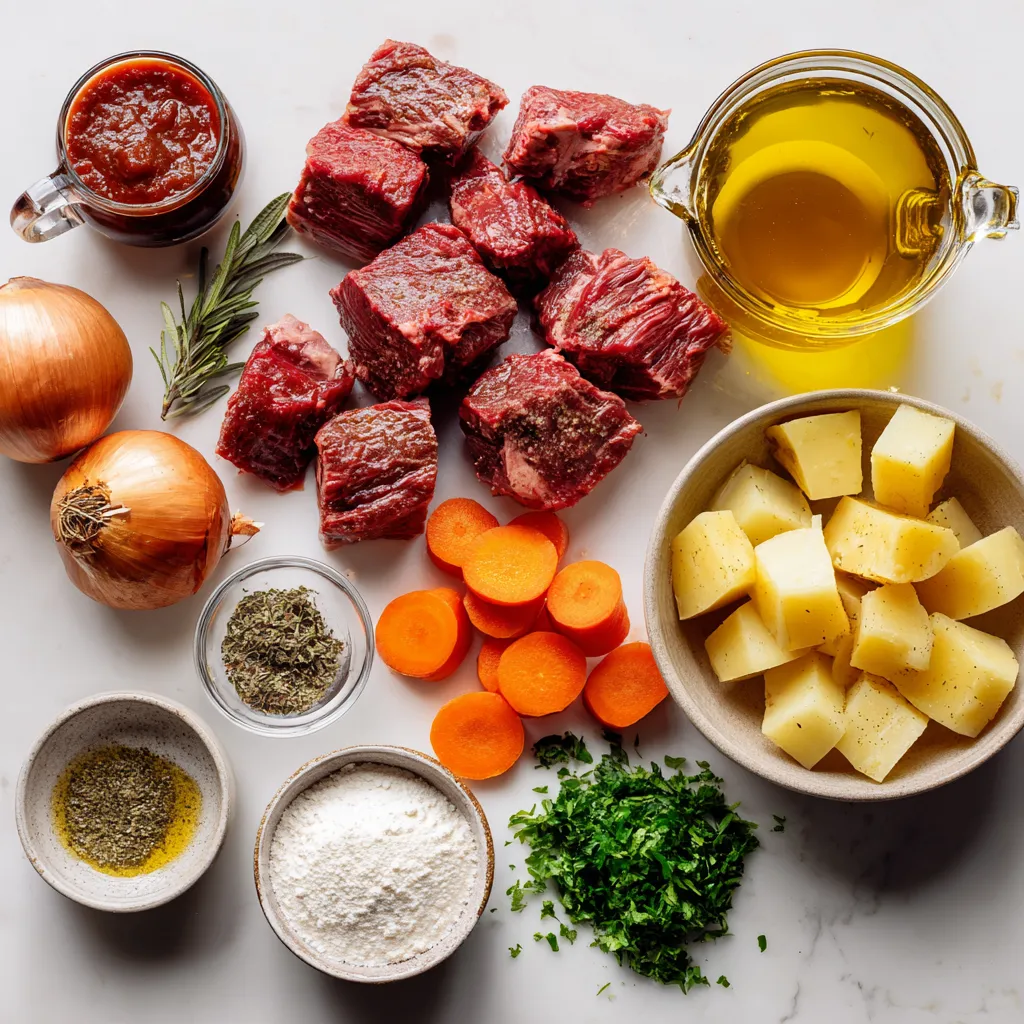 The main ingredients create a solid base for your stew. The beef chuck offers a rich flavor. Use fresh veggies for the best taste.