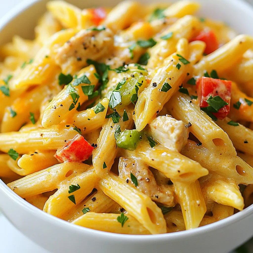 To make Instant Pot Creamy Cajun Pasta, gather these ingredients: - 1 tablespoon olive oil - 1 onion, diced - 3 cloves garlic, minced - 1 red bell pepper, diced - 1 green bell pepper, diced - 1 pound chicken breast, diced - 2 tablespoons Cajun seasoning - 1 teaspoon smoked paprika - 3 cups chicken broth - 12 ounces penne pasta - 1 cup heavy cream - 1 cup shredded cheddar cheese - Salt and pepper to taste - Fresh parsley, chopped (for garnish) Use fresh ingredients for the best flavor. Fresh vegetables like onion and peppers add crunch. For chicken, try using thighs for a richer taste. If you want a lighter dish, swap heavy cream for half-and-half. You can also try non-dairy milk or coconut cream as alternatives. When choosing cheese, pick a good quality cheddar for a creamy finish. To enhance your dish, add herbs like thyme or oregano. A dash of cayenne pepper can boost the spice level. Fresh basil or parsley adds a nice touch. If you enjoy smoky flavors, consider adding more smoked paprika. Feel free to adjust seasonings based on your taste! {{ingredient_image_1}} To start, I turn on my Instant Pot and select the SautΓ© function. I add 1 tablespoon of olive oil. Once the oil is hot, I toss in the diced onion. I let it cook for about 2-3 minutes until it softens. Next, I add 3 minced garlic cloves and sautΓ© for 1 more minute until I smell that rich garlic scent. Now, I add 1 pound of diced chicken breast along with 2 tablespoons of Cajun seasoning and 1 teaspoon of smoked paprika. I stir it well and cook for about 5-7 minutes. This browns the chicken nicely. After the chicken has browned, I add 1 diced red bell pepper and 1 diced green bell pepper. Then, I pour in 3 cups of chicken broth. I mix everything well. Next, I add 12 ounces of penne pasta, making sure it's fully submerged in the broth. I close the lid and set the valve to sealing. I select the Manual or Pressure Cook function and set the time for just 5 minutes. When the timer goes off, I allow for a quick release of pressure. I do this by carefully moving the valve to venting. Once all the steam is released, I open the lid. I then stir in 1 cup of heavy cream and 1 cup of shredded cheddar cheese. I mix until it's creamy and well combined. If needed, I season it with salt and pepper to taste. Finally, I ladle the creamy Cajun pasta into bowls and garnish with fresh chopped parsley. For perfect cooking times, I always set my Instant Pot for the right duration. For this dish, 5 minutes is ideal. It's also important to let the pot release pressure quickly. This step helps keep the pasta from overcooking. If you are unsure, start with a shorter time. You can always add a minute if needed. To check if the pasta is done, I look for a tender texture. I take a small piece and taste it. If it feels a bit firm but not hard, it’s just right. If it's undercooked, I can always add a little broth and cook for 1 more minute. The creamy sauce should coat the pasta well. If it seems too thick, I can add more cream or broth to soften it. To change the spice level, you can adjust the Cajun seasoning. If you like it mild, start with one tablespoon. For more heat, add a bit more. You could also mix in a pinch of cayenne pepper for a spicy kick. Always taste as you go to find your favorite balance. This pasta dish is flexible. You can add shrimp for seafood lovers. Cook the shrimp for a few minutes until pink. For more veggies, try adding spinach or zucchini. Just toss them in after the pasta cooks. They will wilt nicely in the creamy sauce. One mistake is overcooking the pasta. Make sure it's submerged in broth but do not overfill the pot. Another issue is not releasing pressure properly. Always follow the quick release method to avoid a messy kitchen. Lastly, remember to season your dish before serving. A touch of salt and pepper can make a big difference. Pro Tips Use Fresh Ingredients: Fresh vegetables and herbs will elevate the flavor of your dish significantly. Try to use fresh parsley for garnish to enhance the taste and presentation. Adjust the Spice Level: If you prefer a milder dish, reduce the amount of Cajun seasoning or substitute it with a milder blend. You can always add more spice later. Experiment with Proteins: This recipe works well with shrimp or sausage as a substitute for chicken. Just make sure to adjust the cooking times accordingly. Storage Tips: Leftovers can be stored in an airtight container in the fridge for up to 3 days. Reheat gently on the stove, adding a splash of broth or cream if it seems dry. {{image_2}} You can easily make this dish vegetarian. Start by replacing the chicken with diced mushrooms or tofu. Both options soak up flavors well. Use vegetable broth instead of chicken broth. For a vegan version, swap heavy cream for coconut cream or cashew cream. This keeps the pasta creamy and rich. Use nutritional yeast for a cheesy flavor without dairy. If you want to try different pasta, you can use whole wheat or gluten-free penne. Both will work well. Just follow the same cooking time in the Instant Pot. You can also use spaghetti or fusilli if you prefer. Each type will give a unique twist to the dish. If you don’t have Cajun seasoning, you can mix your own. Combine paprika, cayenne pepper, garlic powder, and onion powder for a simple blend. You can adjust the heat by changing the cayenne amount. Other spices like smoked paprika or Italian seasoning can also add flavor. Just be creative with what you have in your spice rack! To store leftovers, let the pasta cool down first. Once cool, place it in an airtight container. Make sure to seal it well. This keeps the pasta fresh for about 3 to 4 days in the fridge. Label your container with the date, so you know when you made it. When reheating, add a splash of chicken broth or cream. This helps restore the creamy texture. You can use a microwave or stovetop for reheating. If using a microwave, heat in short bursts and stir often. If using the stovetop, warm it 