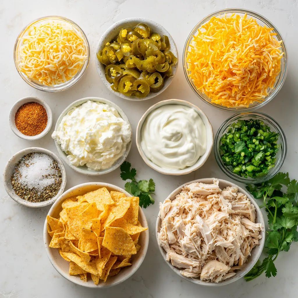 For this casserole, I always start with the main ingredients. Shredded chicken is key. It adds protein and makes the dish hearty. I love using a mix of cream cheese and sour cream. This blend gives the casserole a rich, creamy texture. Next, I add cheddar and mozzarella. These cheeses melt beautifully and add great flavor. For the jalapeños, you can choose fresh or pickled. Fresh jalapeños bring a crisp bite, while pickled ones offer a tangy twist.