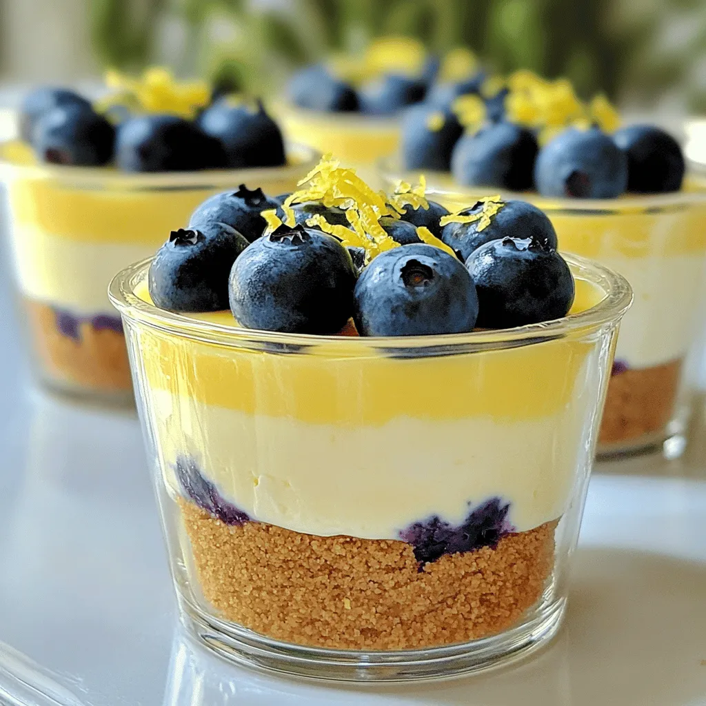For a beautiful touch, garnish each cup with blueberries and a sprinkle of lemon zest. This adds color and makes each cup look inviting. Place an extra blueberry on top for a fun pop of color. It makes the dessert even more special.