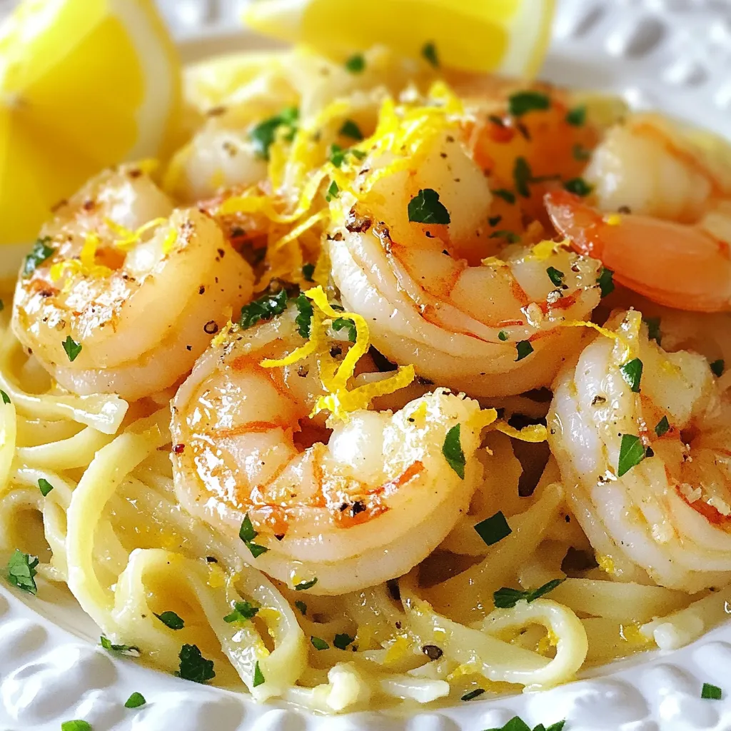 - Large shrimp (1 pound) - Fresh garlic (4 cloves, minced) - Unsalted butter (1/4 cup) - Olive oil (1/4 cup) - Lemon zest (1 tablespoon) - Fresh lemon juice (1/4 cup) - Red pepper flakes (1/4 teaspoon) - Salt and pepper for seasoning - Fresh parsley (1/2 cup, chopped) - Linguine or spaghetti (8 ounces) - Lemon wedges (for garnish) Gathering the right ingredients is key to making lemon garlic shrimp scampi. You start with large shrimp, about one pound. They should be peeled and deveined for the best results. Fresh garlic adds great flavor, so use four cloves, minced. Next, you need unsalted butter and olive oil, each 1/4 cup. These fats help to create a rich sauce. For that fresh zing, grab one tablespoon of lemon zest and 1/4 cup of fresh lemon juice. To add a bit of heat, include 1/4 teaspoon of red pepper flakes, adjusting to your taste. Don’t forget salt and pepper for seasoning. You'll also need fresh parsley, chopped, about 1/2 cup, to brighten the dish. For the pasta, choose either 8 ounces of linguine or spaghetti. Finally, lemon wedges will serve as a garnish, adding a lovely touch to your plate. {{ingredient_image_1}} First, bring a large pot of salted water to a boil. This adds flavor to the pasta. Add 8 ounces of linguine or spaghetti to the pot. Cook according to the package instructions until the pasta is al dente. This takes about 8 to 10 minutes. Once done, drain the pasta in a colander. Make sure to reserve about 1/2 cup of the pasta water. This water helps to adjust the sauce later. In a large skillet, melt 1/4 cup of unsalted butter and 1/4 cup of olive oil over medium heat. This blend adds a rich flavor. Once melted, add 4 cloves of minced garlic. Cook the garlic for 30 seconds until it smells great. Be careful not to burn it, as burnt garlic tastes bitter. Now, add 1 pound of peeled and deveined shrimp to the skillet. Season with salt, pepper, and 1/4 teaspoon of red pepper flakes. These spices bring out the shrimp's natural taste. Cook the shrimp for 2 to 3 minutes on one side until they turn pink. Then, flip them over. Add 1 tablespoon of lemon zest and 1/4 cup of lemon juice to the shrimp. This gives the dish a bright, zesty flavor. Add the drained pasta to the skillet with the shrimp. Toss everything together until well mixed. If the mixture looks dry, slowly stir in some of the reserved pasta water. This helps create a nice, silky sauce that coats the pasta and shrimp. Finally, stir in 1/2 cup of chopped fresh parsley. This adds color and freshness to the dish. Remove the skillet from heat. Serve the shrimp scampi right away, with lemon wedges on the side. These wedges add extra zing when squeezed over the dish. To make shrimp perfect, avoid overcooking them. Shrimp cook fast. If you cook them too long, they become rubbery. You want them to be tender and juicy. - Cook shrimp for 2-3 minutes on one side. - Flip them when they turn pink on the first side. You can tell shrimp are done by their color. Raw shrimp are gray. When they turn pink, they are ready. Remove them from heat right away. You can change the heat level by adjusting red pepper flakes. If you like more spice, add more flakes. If you prefer it mild, use less. - Start with 1/4 teaspoon and taste as you go. To enhance lemon flavor, add extra lemon zest. It gives a bright taste. Zest is the colored part of the peel. Use a microplane to zest the lemon easily. Cooking pasta al dente is key for this dish. Al dente means "to the tooth" in Italian. It means the pasta is firm, not mushy. - Cook the linguine or spaghetti until it is slightly firm when bitten. To test for doneness, bite a piece of pasta. If it feels firm but not hard, it is ready. Drain it and save some pasta water for later. This water helps to mix with your sauce. Pro Tips Use Fresh Shrimp: Always opt for fresh shrimp if possible, as they have a superior flavor and texture compared to frozen ones. Adjust the Spice: Feel free to modify the amount of red pepper flakes based on your heat preference for a customized kick. Reserve Pasta Water: The starchy pasta water not only helps to thicken the sauce but also enhances the overall flavor of the dish. Garnish Right Before Serving: Add the parsley and lemon wedges just before serving to maintain their freshness and vibrant color. {{image_2}} You can change up the protein in this dish. If you love scallops, use them instead of shrimp. Scallops cook fast and taste great with the same flavors. You can also use chicken. Just sauté it until it's cooked through. For a vegetarian twist, try sautéing fresh vegetables. Bell peppers, zucchini, or mushrooms work well. They add color and nutrients to your meal. You can serve this dish in many ways. Pair it with a fresh salad for a light meal. A simple green salad with a lemon vinaigrette is perfect. You can also serve it over rice instead of pasta. Basmati or jasmine rice will soak up the sauce nicely. For a unique twist, try it as a salad. Just toss the shrimp and pasta with greens and a little dressing. Want to take your dish to the next level? Add a splash of white wine to the skillet. It adds depth and a nice aroma. You can also toss in capers or sun-dried tomatoes. These ingredients give the dish extra flavor and a gourmet touch. Don’t be afraid to experiment with your own favorites! To store leftover shrimp scampi, place it in an airtight container. This keeps it fresh and safe to eat. You can store it in the fridge for up to three days. If you wait longer than that, the shrimp may spoil. You can freeze leftover scampi for later use. Use a freezer-safe container or bag to prevent freezer burn. Before freezing, let it cool completely. This helps keep the texture nice. To thaw, place it in the fridge overnight. You can also use the microwave to thaw it quickly. When reheating shrimp scampi, do it gently. Use a skillet over low heat. This keeps the shrimp from getting tough. Stir it often and add a splash of water or broth if it seems dry. After reheat