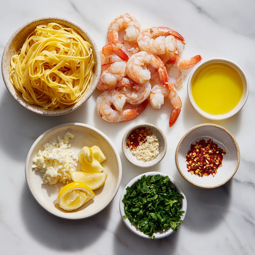 Gathering the right ingredients is key to making lemon garlic shrimp scampi. You start with large shrimp, about one pound. They should be peeled and deveined for the best results. Fresh garlic adds great flavor, so use four cloves, minced.