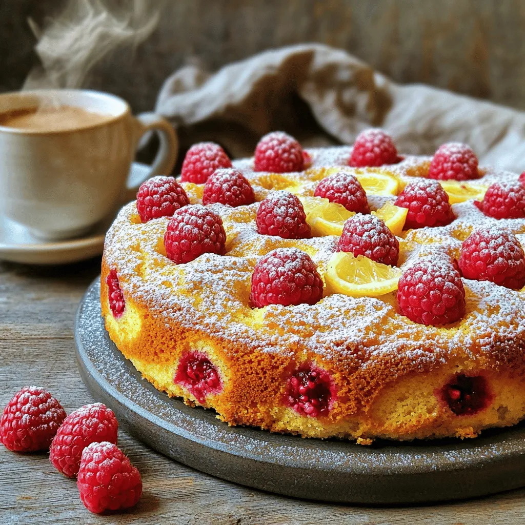 Pair this cake with a warm cup of coffee or tea. The bright lemon and sweet raspberry flavors complement each other nicely. A dollop of whipped cream adds creaminess. You can also serve it with fresh raspberries on the side for a pop of color. Enjoying it warm makes the flavors shine even more!
