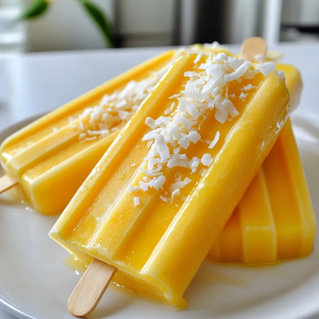 Refreshing ice pops made with ripe mangoes and creamy coconut milk, perfect for hot summer days.