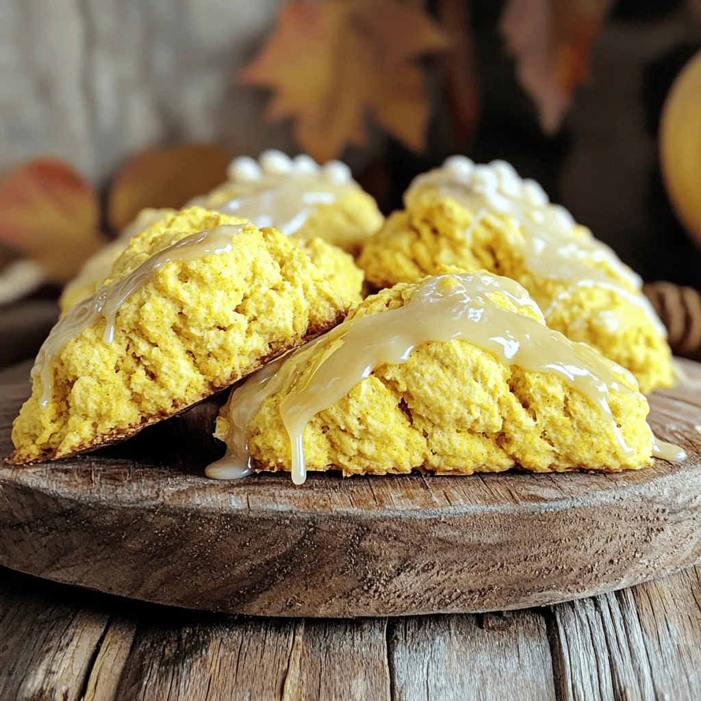 To make Maple Glazed Pumpkin Scones, you will need the following ingredients: - 2 cups all-purpose flour - 1/2 cup brown sugar, packed - 1 tablespoon baking powder - 1/2 teaspoon baking soda - 1/4 teaspoon salt - 1 teaspoon ground cinnamon - 1/2 teaspoon ground nutmeg - 1/4 teaspoon ground ginger - 1/2 cup cold unsalted butter, cubed - 1/2 cup canned pumpkin puree - 1/4 cup heavy cream - 1 large egg - 1 teaspoon vanilla extract - 1 cup powdered sugar - 2 tablespoons pure maple syrup - 1-2 tablespoons milk (as needed for consistency) These ingredients are simple and easy to find. You may already have some in your kitchen. I love the warm flavors of cinnamon and nutmeg mixed with the sweet pumpkin. The maple glaze adds a perfect touch of sweetness. You can use this full recipe to guide you through the steps of making these tasty scones. Enjoy every bite! First, we need to get the oven ready. Preheat your oven to 400°F (200°C). While that heats up, line a baking sheet with parchment paper. This will stop the scones from sticking. Now, let’s mix the dry ingredients. In a large bowl, whisk together: - 2 cups all-purpose flour - 1/2 cup brown sugar, packed - 1 tablespoon baking powder - 1/2 teaspoon baking soda - 1/4 teaspoon salt - 1 teaspoon ground cinnamon - 1/2 teaspoon ground nutmeg - 1/4 teaspoon ground ginger Make sure everything is well combined. This mix gives our scones great flavor. Next, grab another bowl for the wet ingredients. Whisk together: - 1/2 cup canned pumpkin puree - 1/4 cup heavy cream - 1 large egg - 1 teaspoon vanilla extract Mix until smooth. Then, pour this wet mix into the dry mix. Stir gently until just combined. The dough should be soft but not sticky. Be careful not to overmix, as this can make the scones tough. Turn the dough onto a floured surface. Gently knead it a few times to bring it together. Pat the dough into a circle about 1 inch thick. Cut it into wedges, like a pizza, or use a round cutter for biscuit-style scones. Place them on the prepared baking sheet. Bake for 15-20 minutes, until they are golden brown. A toothpick should come out clean when poked in the center. While the scones bake, let’s make the glaze. In a small bowl, whisk together: - 1 cup powdered sugar - 2 tablespoons pure maple syrup - 1-2 tablespoons milk (as needed for consistency) Keep whisking until it is smooth and glossy. This glaze adds a sweet touch. Once the scones cool for a few minutes, drizzle the maple glaze over them while they are still warm. Let the glaze set for a few minutes. Now, you are ready to enjoy your delicious Maple Glazed Pumpkin Scones! Pair them with your favorite warm drink for the best treat. To get the right dough, start with cold butter. This keeps the scones flaky. When you mix the wet and dry ingredients, stop as soon as they come together. The dough should feel soft but not sticky. If it feels too dry, add a splash of cream. If it’s too wet, sprinkle in a bit of flour. Mixing too much can make scones tough. When you combine the wet and dry ingredients, use a gentle hand. Stir just until no dry flour shows. A few lumps are okay! This keeps your scones light and fluffy. To bake scones evenly, make sure they are all the same size. If you cut them into wedges, aim for equal pieces. For round scones, use a biscuit cutter and press straight down. Space them about an inch apart on the baking sheet. This allows heat to circulate around each scone, giving you a nice golden finish. Try these tips when you make your Maple Glazed Pumpkin Scones for the best results! For the full recipe, refer back to the recipe section. {{image_2}} You can add nuts or chocolate chips to your pumpkin scones for extra flavor. Chopped walnuts or pecans work well. They add a nice crunch to the soft scone. If you love chocolate, mix in some semi-sweet chocolate chips. Add about 1/2 cup of your choice to the dough. Make sure to fold them in gently so you don’t overmix the dough. Feel free to change the spices or add extracts to make your scones unique. You can try adding a dash of allspice or clove for a warm kick. Replace the vanilla extract with almond extract for a different taste. You could even add a splash of maple extract to enhance the maple flavor. Just remember to start with a small amount. You can always add more if needed. If you need a gluten-free option, it’s easy to adapt this recipe. Use a gluten-free flour blend instead of all-purpose flour. Make sure the blend contains xanthan gum for better texture. The scones may bake a bit differently, so keep an eye on them in the oven. Check for that lovely golden brown color. For the complete recipe, check out the Full Recipe. Store leftover scones in an airtight container. Place them in a cool, dry spot. They stay fresh for about two days. For longer storage, keep them in the fridge. This helps maintain their softness. To reheat scones, preheat your oven to 350°F (175°C). Place scones on a baking sheet. Heat them for about 5 to 10 minutes. This brings back their warmth and crispness. You can also use a microwave. Heat each scone for about 15-20 seconds. This method is quick, but the texture may change. You can freeze scones to enjoy later. Allow them to cool completely first. Wrap each scone tightly in plastic wrap. Then place them in a freezer bag. They can last up to three months. To eat, thaw overnight in the fridge. Reheat as mentioned above. Enjoy your Maple Glazed Pumpkin Scones fresh, even after freezing! For the complete recipe, check the Full Recipe. Yes, you can use fresh pumpkin. Start by roasting or boiling pumpkin until soft. Then, mash it well. Use the same amount as canned pumpkin puree. Fresh pumpkin adds great flavor and nutrition. Look for a golden brown color on the tops. You can also use a toothpick. Insert it into the center of a scone. If it comes out clean, the scones are done. They should feel firm, not wet. These scones pair well with hot drinks like coffee or tea. You can also serve them 