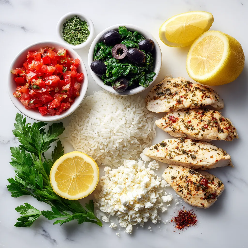 The main ingredients set the stage for a rich flavor in your Mediterranean Chicken Rice. Jasmine rice gives a lovely aroma and texture, while chicken breasts provide lean protein. Olive oil and spices like paprika and oregano boost the taste.
