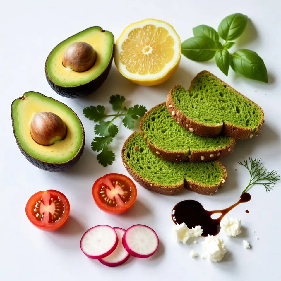 Assemble the Toasts: Spread a generous layer of the mashed avocado on one slice of toast. Top with tomato slices, a sprinkle of salt, and a few herbs. On a second slice, add a layer of avocado, followed by the sliced radish, crumbled feta cheese, and a drizzle of balsamic glaze. For the third slice, spread mashed avocado and then garnish heavily with mixed fresh herbs, adding a little more salt if desired.