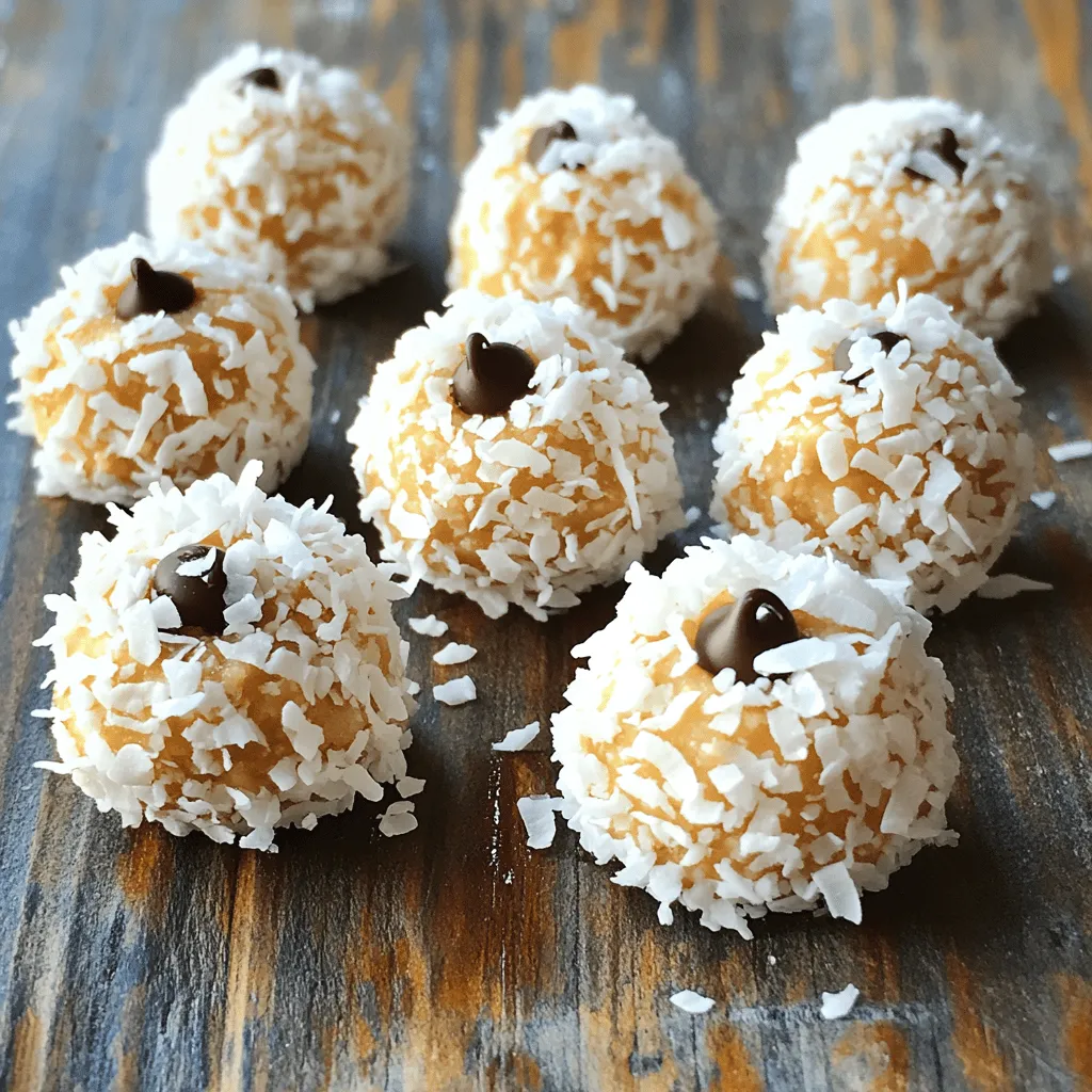 For these tasty bites, gather these main ingredients: - 1 cup rolled oats - 1/2 cup unsweetened shredded coconut - 1/2 cup almond butter (or peanut butter) - 1/4 cup honey (or maple syrup for vegan option) - 1/4 teaspoon vanilla extract - 1/4 teaspoon sea salt These ingredients work together to give you a satisfying and healthy snack. The rolled oats provide fiber and energy, while the almond butter adds protein and healthy fats. Coconut gives a nice chew and natural sweetness. Honey or maple syrup binds everything and adds a touch of sweetness. You can make these bites even more fun by adding optional ingredients: - 1/4 cup dark chocolate chips (optional) - Extra shredded coconut for rolling The chocolate chips bring a rich flavor. If you love coconut, roll the bites in extra shredded coconut for a tropical twist. You can also try adding nuts, seeds, or dried fruit to fit your taste! These energy bites are not just tasty; they are also nutritious. Here’s what each main ingredient offers: - Rolled oats: Great source of fiber, helps keep you full. - Shredded coconut: Provides healthy fats and adds texture. - Almond butter/peanut butter: Packed with protein and nutrients. - Honey/maple syrup: Natural sweeteners that give energy. These ingredients combine to create a snack that fuels your day. Plus, they are easy to make! You can find the full recipe here. To start, gather all your ingredients. This makes the process smooth and easy. You need: - 1 cup rolled oats - 1/2 cup unsweetened shredded coconut - 1/2 cup almond butter (or peanut butter) - 1/4 cup honey (or maple syrup for vegan option) - 1/4 cup dark chocolate chips (optional) - 1/4 teaspoon vanilla extract - 1/4 teaspoon sea salt - Extra shredded coconut for rolling Next, measure each item carefully. Fresh ingredients work best for flavor and texture. Now, grab a medium mixing bowl. Add the rolled oats and shredded coconut. Stir them well. This ensures even distribution. In another bowl, mix the almond butter, honey, vanilla extract, and sea salt. Blend until creamy. Once smooth, pour this mix over the oats and coconut. Stir everything together until you see no dry spots. If you like chocolate, add the dark chocolate chips now. This step brings a sweet and rich taste to each bite. Now it’s time to form your bites. Use your hands to roll small balls. Aim for about 1 inch in diameter. If your hands stick, wet them slightly with water. This helps the mixture roll easily. Once rolled, coat each ball in extra shredded coconut. This adds a nice texture. Place the bites on a baking sheet lined with parchment paper. Refrigerate them for at least 30 minutes. This helps them firm up. After they are firm, store the energy bites in an airtight container. They last in the fridge for up to a week. You can also freeze them for longer. Enjoy your tasty snacks anytime! For the complete recipe, check out the Full Recipe. To get the right texture for your energy bites, focus on the mix. Make sure to use rolled oats, as they provide a nice chew. The almond butter or peanut butter should be creamy. This helps bind everything together. Adjust the amount of honey if the mix feels too dry. If it’s too wet, add a bit more oats or shredded coconut. Rolling the bites with slightly damp hands also helps shape them easily. Store your energy bites in an airtight container. This keeps them fresh and tasty. You can keep them in the fridge for up to a week. For longer storage, freeze them in a single layer on parchment paper. Once frozen, transfer them to a freezer bag. They will last for about three months in the freezer. Just remember to label the bag with the date! One common mistake is not measuring ingredients correctly. Too much liquid can make the bites too sticky, while too little can make them dry. Another mistake is not chilling them long enough. If you skip the fridge time, they might fall apart. Lastly, forget about the chocolate chips at your own risk! They add a nice touch. Follow these tips, and you’ll have perfect No-Bake Coconut Energy Bites. For the full recipe, check the instructions above. {{image_2}} You can easily switch up the flavor of your energy bites. Try adding spices like cinnamon or nutmeg for warmth. You can also mix in extracts such as almond or coconut for a more tropical taste. If you want a chocolate twist, add cocoa powder or more chocolate chips. Each tweak brings a new flavor and fun! Feel free to swap ingredients based on your taste or what you have. If you don’t have almond butter, peanut butter works well too. For a vegan option, use maple syrup instead of honey. You can also replace dark chocolate chips with dried fruit or seeds for added texture and sweetness. These swaps keep the bites tasty and healthy. These energy bites fit many diets. They are naturally gluten-free, thanks to oats. If you want a nut-free version, use sunflower seed butter. This makes them safe for kids with nut allergies. You can also adjust the sweetener to fit your health goals. With these ideas, everyone can enjoy these nutritious snacks from the [Full Recipe]. To keep your no-bake coconut energy bites fresh, store them in an airtight container. This method helps to lock in moisture and flavor. Place the container in your fridge. They should stay good for about a week. If you notice any changes in smell or texture, it's best to discard them. Want to save some for later? Freezing is a great option! After you form the energy bites, place them on a baking sheet. Make sure they are not touching each other. Freeze them for about an hour. Once they are solid, transfer them to a freezer-safe bag or container. They can last up to three months in the freezer. When you're ready to eat, just thaw them in the fridge overnight. Always check your energy bites before eating. Look for any signs of spoilage. If they smell off or have an unusual texture, throw them out. Keep in mind that ingredients like almond butter and honey can spoil if not stored prop
