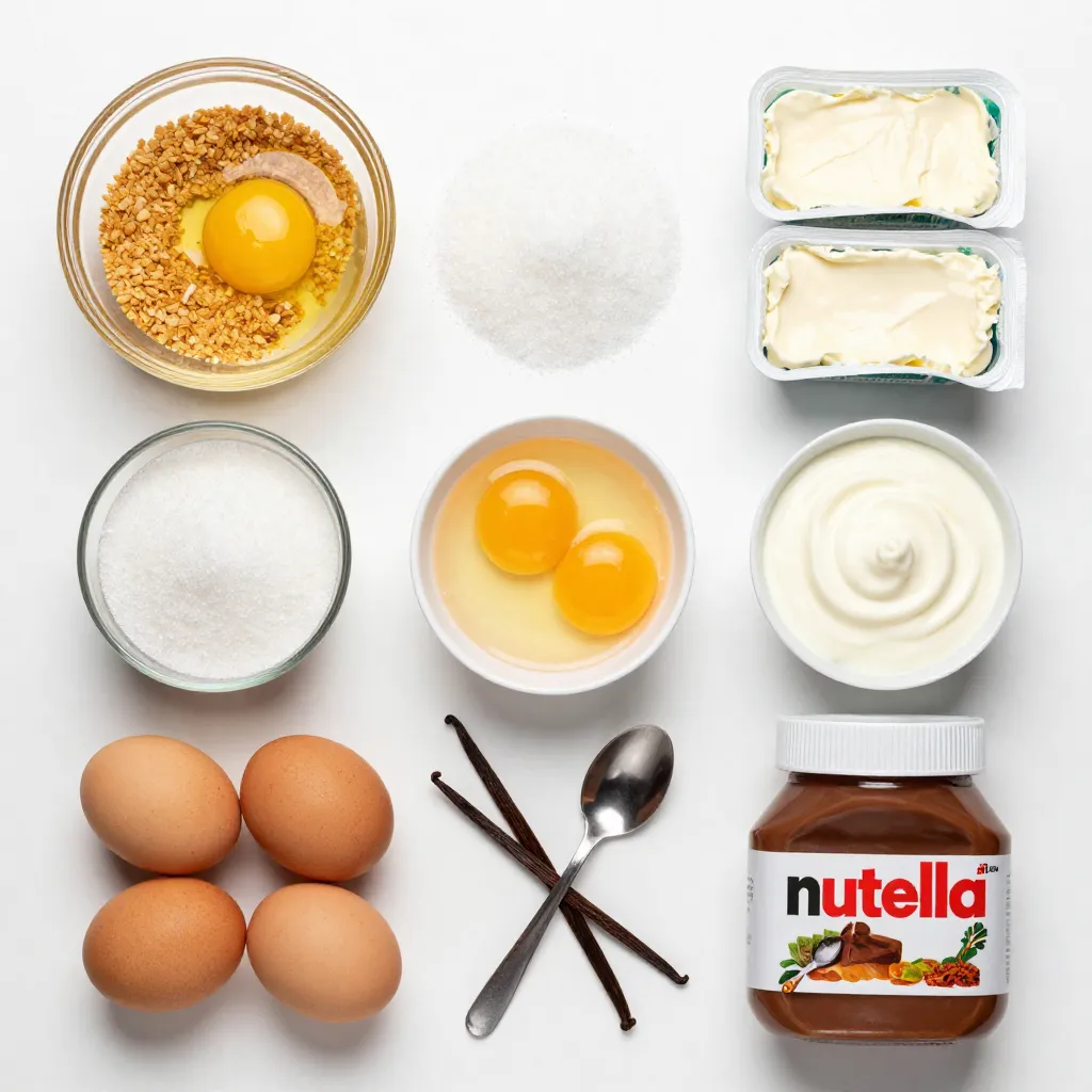 To make a Nutella swirl cheesecake, you need fresh and simple ingredients. Here is the list of what you will need: