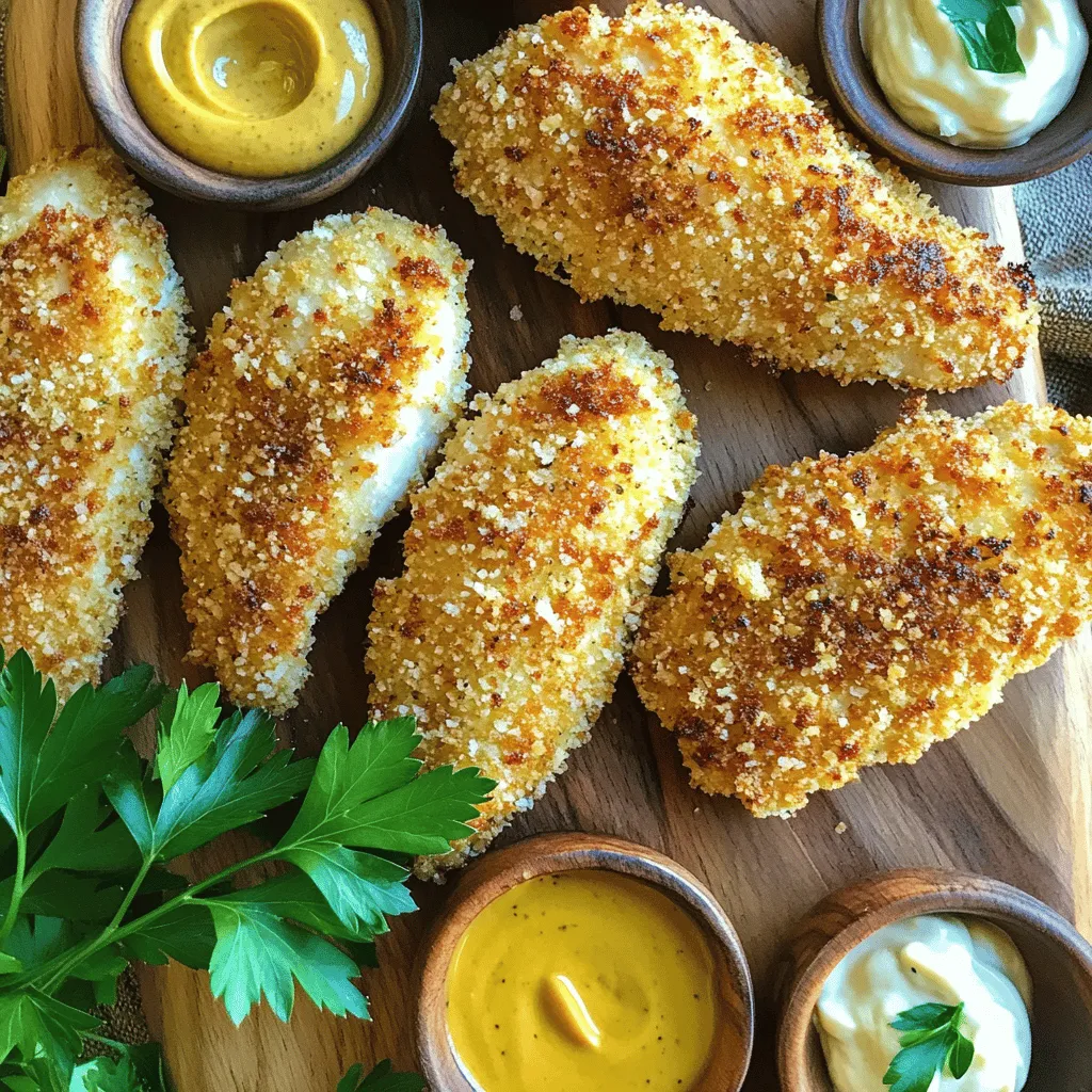 To get that crunchy outer layer, follow these simple steps. First, use panko breadcrumbs. They create a better texture than regular ones. Second, ensure each chicken strip is coated evenly. This helps them crisp up. Lastly, spray or drizzle the chicken with oil before baking. This adds extra crunch. Bake them until golden brown and watch them shine!
