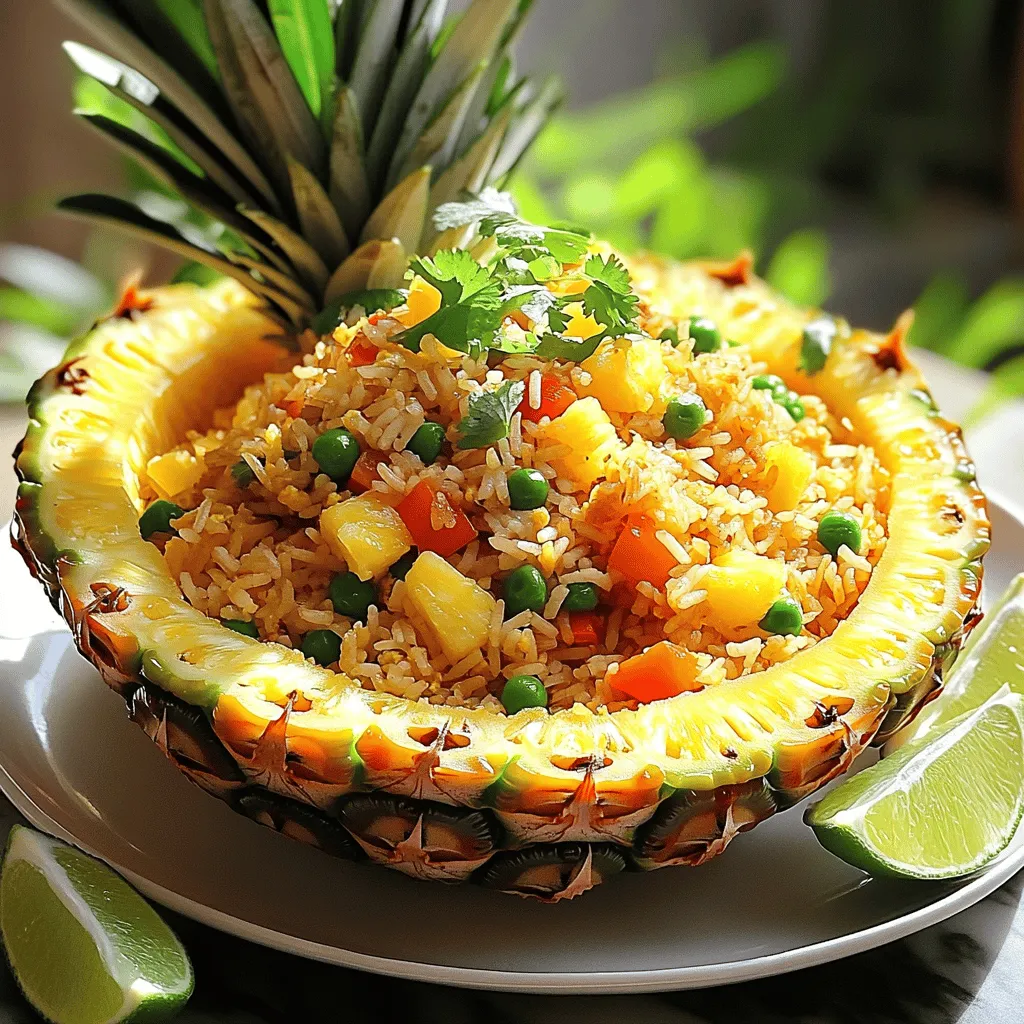 When I make pineapple fried rice, I love to use fresh ingredients. Fresh pineapple gives a sweet burst that contrasts with the savory rice. Day-old jasmine rice is best because it holds its shape.