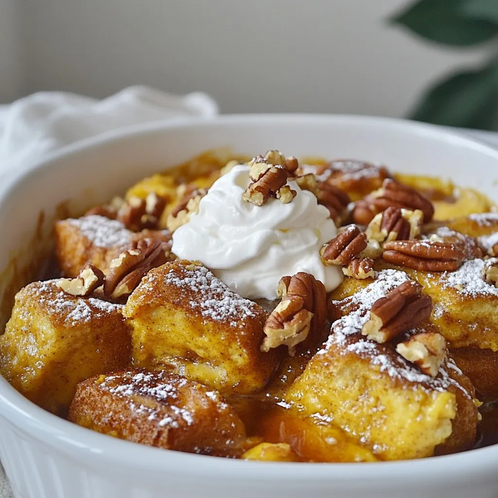 To get rich flavor, always use fresh pumpkin puree. You can make your own from real pumpkins. This gives a fuller taste than canned. Use good quality bread like brioche or challah. They soak up the mixture well and stay soft. Add a little more pumpkin spice if you like strong flavors. It will make each bite taste like fall.