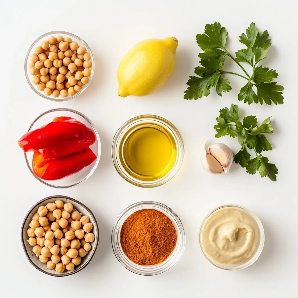 I love using canned chickpeas for convenience. Drain and rinse them well. This helps remove extra salt and keeps the hummus fresh. The roasted red pepper adds a sweet flavor. You can make your own by roasting peppers on a grill or in the oven until the skin is charred. This gives the hummus a deep, rich taste.
