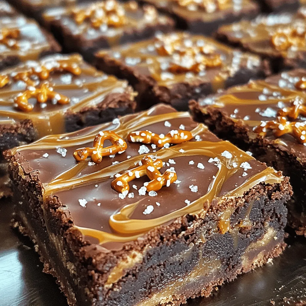 ![To make the perfect Salted Caramel Pretzel Brownies, you need a few key ingredients. Each one adds a special touch to this sweet treat. Here’s the list you will need: - 1 cup unsalted butter, melted - 1 cup granulated sugar - 1 cup brown sugar, packed - 4 large eggs - 1 teaspoon vanilla extract - 1 cup all-purpose flour - 1 cup cocoa powder - 1/2 teaspoon baking powder - 1/2 teaspoon salt - 2 cups mini pretzels, chopped - 1 cup salted caramel sauce (store-bought or homemade) - Sea salt flakes for topping Each ingredient plays an important role. The butter gives the brownies a rich flavor. The sugars add sweetness and create a nice texture. Eggs help bind everything together while adding moisture. Cocoa powder is key for that deep chocolate taste. The baking powder helps the brownies rise, creating a soft bite. Salt balances the sweetness and enhances flavors. Chopped pretzels add crunch and a salty kick. The salted caramel sauce adds a smooth, sweet layer that makes every bite special. Finally, sea salt flakes on top give that perfect salty finish. For the full recipe and detailed instructions, check out the [Full Recipe]. - Preheat your oven to 350°F (175°C). Grease a 9x13 inch baking pan or line it with parchment paper. - In a large mixing bowl, whisk together 1 cup of melted butter, 1 cup of granulated sugar, and 1 cup of brown sugar. Mix until it looks smooth. - Add 4 large eggs, one at a time. Make sure to whisk well after each egg. Then, mix in 1 teaspoon of vanilla extract. - In another bowl, sift together 1 cup of all-purpose flour, 1 cup of cocoa powder, 1/2 teaspoon of baking powder, and 1/2 teaspoon of salt. - Gradually add the dry mixture to the wet ingredients. Stir gently until just combined. - Fold in 2 cups of chopped mini pretzels. Set aside a handful for later. - Pour half of the brownie batter into your prepared baking pan. Spread it evenly. - Drizzle half of 1 cup of salted caramel sauce over the brownie layer. - Spread the rest of the brownie batter on top. Smooth it out to cover the caramel. - Drizzle the remaining caramel sauce on top. Sprinkle reserved pretzels and sea salt flakes to taste. - Bake for 25-30 minutes. A toothpick inserted in the center should come out mostly clean, with a few moist crumbs. - Allow the brownies to cool in the pan on a wire rack for at least 30 minutes before slicing into squares. For more details, check the Full Recipe. For the perfect brownies, you need to adjust the baking time. If you like fudgy brownies, bake them for 25 minutes. For a more cake-like texture, go for 30 minutes. To check for doneness, use a toothpick. Insert it into the center of the brownies. If it comes out with a few moist crumbs, they are ready. If there is wet batter, bake a bit longer. Want to boost flavor? Try adding chocolate chips or chopped nuts. They add texture and richness. You can also mix in some espresso powder for a deeper chocolate taste. For a richer caramel flavor, use homemade caramel sauce. It will taste fresher and creamier than store-bought. Just be sure to let it cool before drizzling over the brownies. Cutting and displaying brownies can be fun! Use a sharp knife for clean edges. Wipe the knife between cuts for neat squares. For serving, place brownies on a pretty platter. Drizzle extra caramel sauce on top for a nice touch. Pair them with vanilla ice cream for a delightful treat. Check out the Full Recipe for more ideas! {{image_2}} You can enjoy these brownies without gluten. Use alternative flours like almond flour or coconut flour. These flours add a nutty taste and a soft texture. Adjust the liquid in your recipe. Gluten-free flours absorb more moisture. Start with less flour and add more if needed. You can get creative with toppings. Try adding crushed nuts like pecans or walnuts. They add crunch and flavor. Mix in chocolate chips for extra sweetness. You can also use different kinds of caramel sauce or drizzle chocolate on top for fun. Think about adding a sprinkle of sea salt for a bold taste. Serve brownies in fun ways. Cut them into small squares for a party. You can stack them with ice cream for a sundae. Pour warm fudge sauce over the brownies for a rich treat. You can even serve them with fresh fruit, like strawberries or raspberries, for a fresh twist. To keep your brownies fresh, store them in an airtight container. This prevents them from drying out. Use a container that fits the brownies snugly. You can layer parchment paper between layers to avoid sticking. Keep them at room temperature for up to four days. If you want to keep them longer, refrigeration is an option. To freeze your brownies, first let them cool completely. Cut them into squares and wrap each piece in plastic wrap. Then, place the wrapped brownies in a freezer bag or container. This keeps them fresh for about three months. When you’re ready to enjoy, take them out and let them thaw at room temperature. You can also microwave them for a few seconds for a warm treat. At room temperature, brownies last about four to five days. If they look dry or hard, it’s time to toss them. Watch for any signs of mold or an off smell. If you notice any changes, it’s best to discard them. For the best flavor and texture, enjoy them fresh! For more information, check the Full Recipe. You can test your brownies with a toothpick. Insert it into the center of the brownies. If it comes out mostly clean with a few moist crumbs, they are done. This method helps avoid overbaking. Keep an eye on the time, but the toothpick test is your best friend. Yes, you can make these brownies ahead of time. I suggest baking them a day before serving. This allows the flavors to meld. Once cooled, store them in an airtight container. They stay fresh and tasty for up to four days. To reheat brownies, use the microwave or oven. For the microwave, warm them for 10-15 seconds. Check them often to avoid drying out. If using the oven, set it to 350°F (175°C). Wrap the brownies in foil and