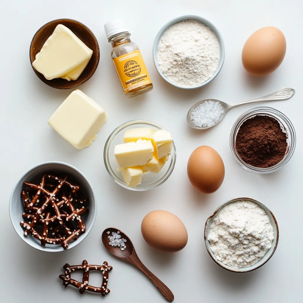 Next, combine flour and cocoa powder. They form the base and give the brownies a deep chocolate flavor. Baking powder helps the brownies rise, while salt enhances the overall taste. Pretzel pieces offer a fun crunch and a salty kick.