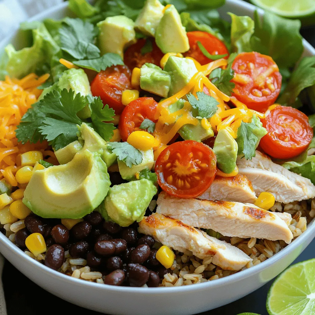 - 2 cups cooked brown rice - 1 lb boneless, skinless chicken breasts - 1 tablespoon olive oil - 1 teaspoon cumin - 1 teaspoon chili powder - 1 teaspoon paprika - Salt and pepper to taste You need cooked brown rice as a strong base for your bowl. The chicken breasts give it a hearty touch. The olive oil and spices, like cumin and chili powder, add great flavor. Don’t forget the salt and pepper. They make everything taste better. - 1 can (15 oz) black beans, rinsed and drained - 1 cup corn (fresh or frozen) - 1 cup cherry tomatoes, halved - 1 avocado, diced - 1 cup shredded lettuce - 1/2 cup shredded cheddar cheese - Fresh cilantro, chopped, for garnish - 1 lime, cut into wedges Toppings can make your bowl pop with color and taste. Black beans and corn add protein and sweetness. Fresh veggies like cherry tomatoes and avocado bring crunch. Shredded lettuce keeps it light, while cheddar cheese adds creaminess. A sprinkle of cilantro gives a fresh touch. Lime wedges add zest. - Alternate proteins (tofu, shrimp) - Additional toppings (sour cream, salsa, jalapeños) Want to switch things up? You can use tofu or shrimp instead of chicken. These options are tasty and can cater to different diets. Sour cream, salsa, or jalapeños can spice up your bowl. These add flavor and a bit of heat, making every bite exciting. For a complete guide to making these tasty bowls, check the Full Recipe. To start, you will need to marinate the chicken. In a bowl, combine 1 tablespoon of olive oil with 1 teaspoon each of cumin, chili powder, and paprika. Add salt and pepper to taste. Next, take your chicken breasts and coat them well in this spice mix. Let your chicken sit in the fridge for at least 30 minutes. This step packs in flavor and makes the chicken juicy. Once your chicken has marinated, it’s time to cook it. Preheat a large skillet over medium heat. Add the marinated chicken breasts and cook for about 6 to 7 minutes on each side. You want the chicken to reach an internal temperature of 165°F. After cooking, remove the chicken from the skillet. Let it rest for 5 minutes before slicing it into strips. This resting time keeps the juices inside. Next, we will heat the bean and corn mixture. Use the same skillet for added flavor. Add 1 can of rinsed black beans and 1 cup of corn to the skillet. Cook over medium heat for about 3 to 4 minutes. Stir occasionally until everything is heated through and mixed well. This adds a nice texture and taste to your burrito bowls. Now, it's time to assemble your burrito bowls. Start by layering 2 cups of cooked brown rice in each serving bowl as the base. On top of the rice, add the heated bean and corn mixture. Next, arrange the sliced chicken over the mixture. Add halved cherry tomatoes, diced avocado, and shredded lettuce for freshness. Finally, sprinkle shredded cheddar cheese on top. This layering not only looks great but also enhances the flavor with each bite. For the complete recipe, check out the [Full Recipe]. Using a meat thermometer helps ensure your chicken is safe to eat. The chicken should reach 165°F. This tool removes guesswork. You get juicy, tender chicken every time. Let the chicken rest before slicing. Resting for five minutes keeps it moist. If you cut too soon, the juices run out. Patience pays off with this simple step. Squeeze fresh lime juice over your chicken. This adds a bright, zesty kick. Lime juice enhances all the flavors and makes the dish pop. Try different seasonings to mix things up. Chili powder, garlic powder, or even smoked paprika can change the taste. Experimenting keeps your meals fun and fresh. Pre-cook your chicken, beans, and rice for quick assembly. This saves time during busy days. It also makes it easy to grab a meal on the go. Store ingredients separately for freshness. Keep the rice, chicken, and toppings in different containers. This way, everything stays crisp and tasty when you're ready to eat. Want to try this recipe? Check out the Full Recipe for all the details! {{image_2}} You can easily switch things up by making vegetarian or vegan burrito bowls. For a meatless option, try using plant-based proteins like tofu or tempeh. They soak up flavors well and add great texture. Another fun twist is to use quinoa instead of rice. Quinoa is high in protein and gives a nice crunch. It also adds a unique flavor that pairs well with your toppings. If you crave a kick, add chipotle peppers to your burrito bowl. They bring a smoky heat that enhances the dish. You can also incorporate sweet potatoes or roasted veggies. Roasting brings out their natural sweetness and makes them super tasty. Just toss them with some olive oil and spices before baking for a delightful crunch. For something different, think about Thai-inspired chicken flavors. Use coconut milk and curry paste to marinate your chicken. This gives a creamy, spicy twist to your bowl. You can also try Mediterranean toppings. Add olives, feta cheese, or a drizzle of tahini. These ingredients bring fresh, bold flavors that will surprise your taste buds. Don't forget to check the Full Recipe for the perfect base to work with! I recommend using airtight containers for storing your Chicken Burrito Bowls. This keeps the flavors fresh and prevents moisture loss. For best results, store your bowls in the fridge if you plan to eat them within three days. If you want to save them longer, freezing is a great option. Just remember to label the containers with the date. When reheating, do it slowly. Use the microwave or stovetop to warm your burrito bowls. If using a microwave, heat in short bursts for even warming. For stovetop reheating, add a splash of water to keep the rice from drying out. This way, your ingredients will maintain their texture and flavor. Each ingredient in your burrito bowl has a different shelf life. Cooked brown rice lasts about four to six days in the fridge. Cooked chicken stays good for three to four days. Black beans and corn can last up to five days. T