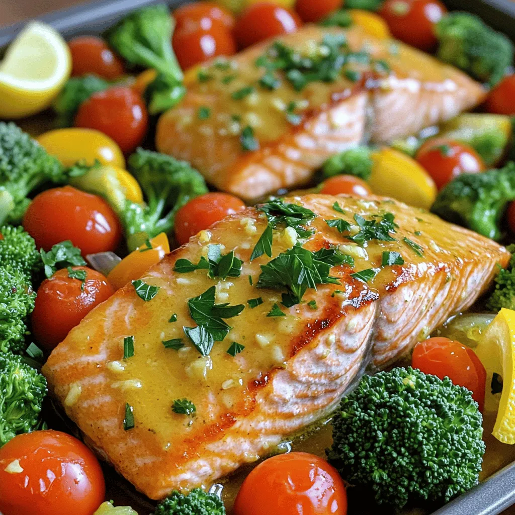 Looking for a delicious and easy dinner idea? You’ll love this Sheet-Pan Lemon Garlic Butter Salmon with Veggies Delight! In just one pan, you can cook tender salmon fillets and colorful veggies, all infused with zesty lemon and garlic. This recipe is perfect for busy weeknights and is packed with flavor. Let’s get cooking, and soon you’ll serve up a meal that impresses everyone at your table!