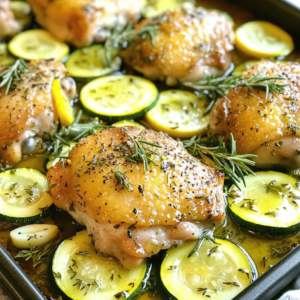 Gather these fresh ingredients before you start. The chicken thighs provide a juicy base. The zucchini adds color and crunch. Lemon brightens the flavors with its zest and juice. Garlic gives a savory touch. Olive oil helps everything cook evenly.