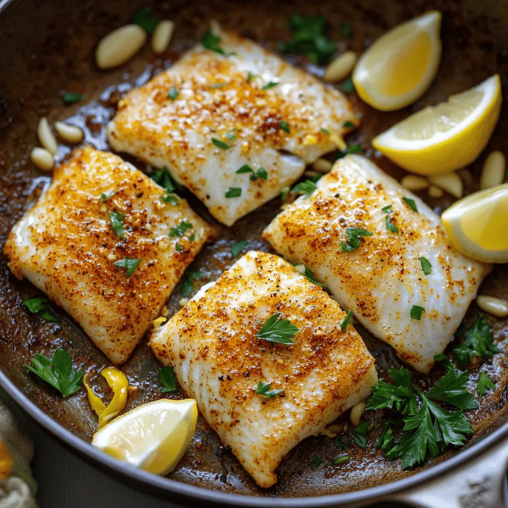 ![To make Skillet Cajun Spiced Flounder, gather these key items: - 4 flounder fillets - 2 tablespoons Cajun seasoning - 3 tablespoons olive oil - 1 lemon (zested and juiced) - 2 cloves garlic, minced - 1/4 teaspoon smoked paprika - Salt and pepper to taste - Fresh parsley, chopped (for garnish) When choosing flounder, look for fillets that are fresh and firm. The flesh should be translucent and odor-free. For Cajun seasoning, a good quality blend will bring out the best flavor. If you struggle to find Cajun seasoning, you can mix paprika, garlic powder, onion powder, and cayenne pepper. For olive oil, choose extra virgin for a rich taste. If you're out of olive oil, you can use canola or vegetable oil as a substitute. The lemon adds brightness, but lime works well too if you need a quick swap. This list will guide you in creating a simple yet delicious dish. For a full recipe and detailed instructions, check the [Full Recipe]. Start by drying the flounder fillets with paper towels. This step is key to a good sear. It helps the fish cook evenly and prevents it from sticking to the pan. Next, mix your Cajun seasoning, smoked paprika, salt, and pepper in a small bowl. Use your hands to rub this spice mix on both sides of the flounder fillets. This gives the fish a bold flavor. Now, heat your skillet over medium-high heat. Pour in the olive oil and let it heat until it shimmers. This helps create a nice crust on the fish. Once your oil is hot, add the minced garlic to the skillet. Sauté the garlic for about 30 seconds. This will fill your kitchen with a wonderful aroma. Be careful not to burn the garlic; it should just become fragrant. Then, gently place the seasoned flounder fillets in the skillet. Cook them for about 3-4 minutes on each side. The fish is done when it flakes easily with a fork. Cooking time might change based on the thickness of the fillets. While the flounder cooks, squeeze fresh lemon juice over the fillets. This adds brightness to the dish. Don’t forget to sprinkle lemon zest on top for extra flavor. Once the fish is done, take it out of the skillet and let it rest for a minute. Finally, garnish your flounder with freshly chopped parsley. This adds a nice pop of color and freshness. For the full recipe, check out the details provided earlier. Enjoy your delicious meal! Flounder cooks quickly, so keep an eye on it. Here are some best practices: - Dry the fillets: Patting the flounder fillets dry helps them sear well. This step stops sticking and gives a nice crust. - Use the right heat: Medium-high heat is best for searing. If it's too low, the fish will steam, not sear. For perfect searing, aim for a skillet that is hot but not smoking. A shimmering surface shows that the oil is ready. To make your meal even better, consider these side dishes: - Steamed rice: A simple side that soaks up flavors. - Roasted vegetables: Colorful veggies add nutrients and taste. - Salad: A fresh salad gives a nice crunch. Pair your flounder with sauces or dips for extra flavor: - Lemon butter sauce: A classic choice that brightens up the fish. - Tartar sauce: A creamy option that complements the spices. - Garlic aioli: Adds a rich taste that works well with the Cajun spices. For more details, check the Full Recipe section. Enjoy your cooking! {{image_2}} You can change the flavor of your Skillet Cajun Spiced Flounder. Try different spice blends. For example, use blackening seasoning for a smoky taste. You can also add some herbs, like thyme or oregano, for a fresh kick. If you like it hot, add cayenne pepper or crushed red pepper flakes. Start with a small amount, and taste as you go. This way, you can find the right heat for you. Baking or grilling flounder is a great option, too. If you bake it, preheat your oven to 400°F. Place the seasoned flounder on a baking sheet and bake for 15-20 minutes. The fish will be firm and juicy. For grilling, heat your grill to medium-high. Grill each side for about 4-5 minutes. This gives a lovely char and smoky flavor. You can also make this a one-pan meal. Add veggies like bell peppers, zucchini, or asparagus to the skillet. Cook them first, then add the flounder. This way, you get a tasty meal with less cleanup. You can find the full recipe to try these ideas. To store leftover flounder, let it cool first. Place the fillets in an airtight container. You can also wrap them tightly in plastic wrap or foil. This keeps them fresh in the fridge. Store them for up to three days. Recommended container types include glass or BPA-free plastic. These containers seal well and keep the fish from drying out. To freeze cooked flounder, first cool the fillets completely. Wrap each fillet tightly in plastic wrap. Then place them in a freezer bag or container. Remove as much air as possible to prevent freezer burn. You can freeze them for up to three months. For thawing, move the flounder to the fridge for a few hours or overnight. This ensures it thaws evenly. To reheat, place the fillets in a skillet over low heat. Heat gently for about 5-7 minutes, or until warmed through. Avoid high heat to keep the fish tender. For more details, you can check the Full Recipe. What can I substitute for Cajun seasoning? You can use paprika, chili powder, and garlic powder. Mix them in equal parts. This blend gives a similar flavor. You can also try Italian seasoning if you want a milder taste. How do I know when the flounder is done? Flounder is done when it flakes easily with a fork. The internal temperature should reach 145°F. If it's opaque and firm, it's ready to eat. Can I use a different type of fish for this recipe? Yes, you can! Try tilapia, cod, or sole. These fish have a similar texture and flavor. Adjust the cooking time as needed. How to make the flounder crispy? To get crispy flounder, make sure to dry the fillets well. Use a hot skillet with enough oil. Avoid overcrowding the pan to keep the heat steady. Can I prepare this recipe in advance? Yes, you can prep the f