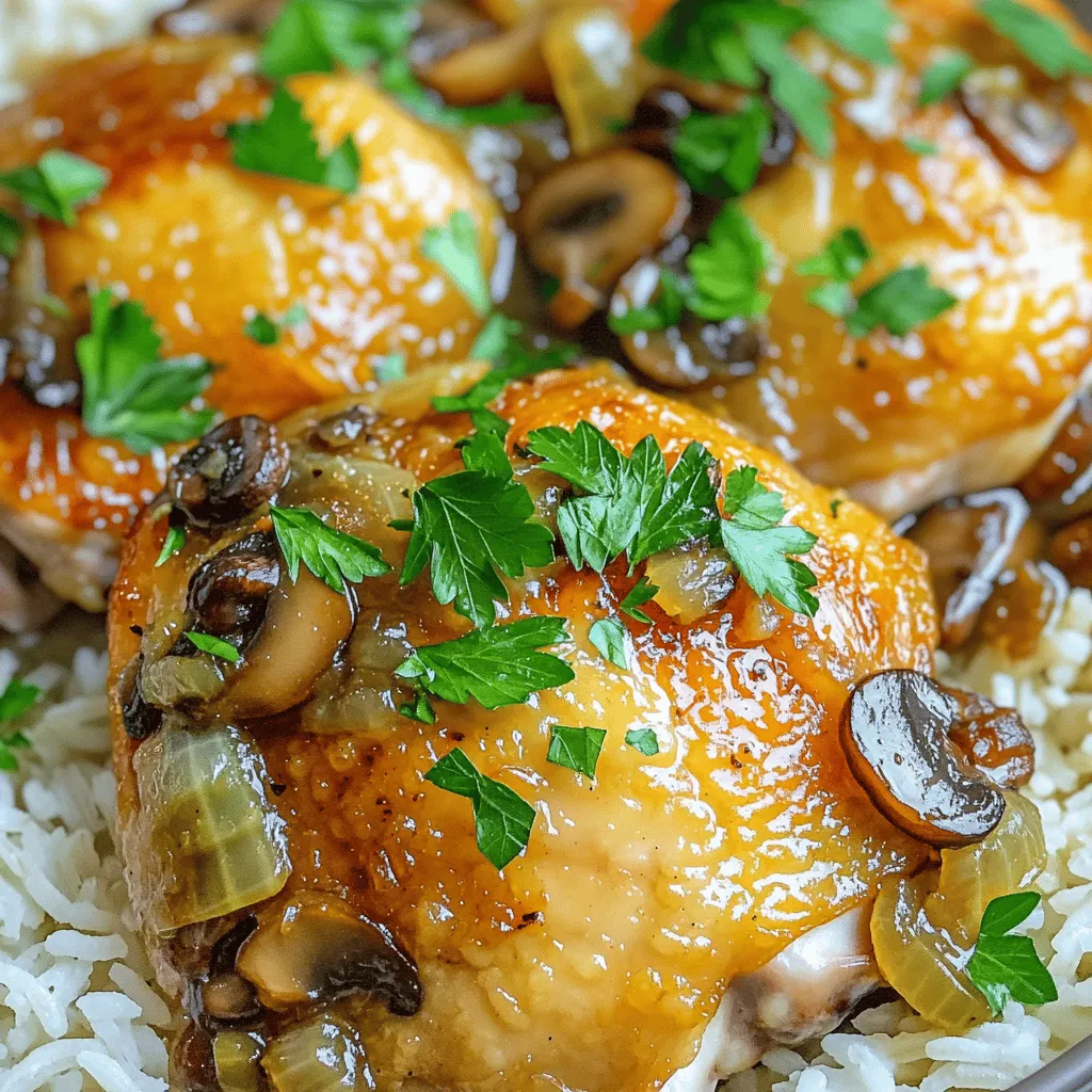 I love using bone-in chicken thighs. They stay juicy and tender during cooking. The fresh mushrooms add a rich flavor. You can choose cremini or button mushrooms for this dish. Onions and garlic are must-haves. They boost the dish’s taste and aroma.