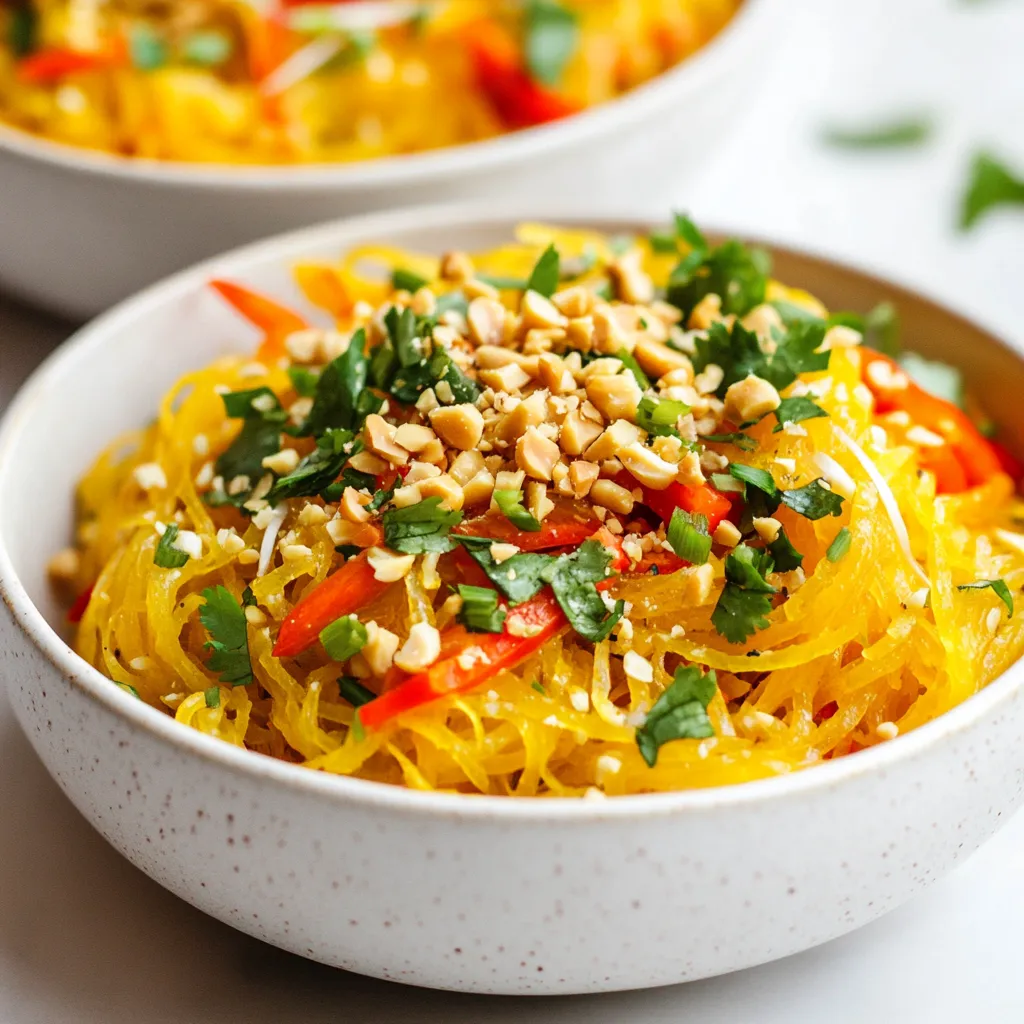 A healthy twist on traditional Pad Thai using spaghetti squash instead of noodles.