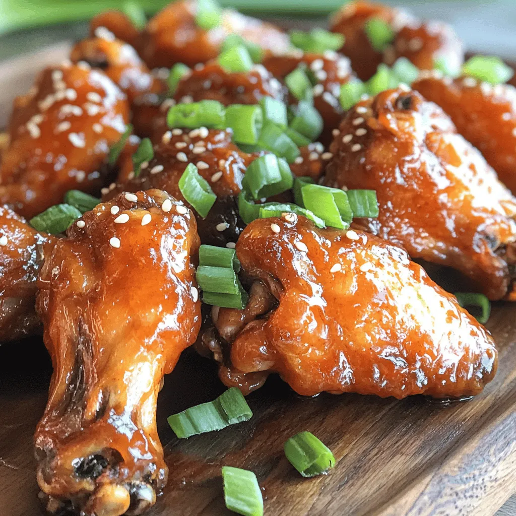 ![- 2 lbs chicken wings - 1/2 cup honey - 1/4 cup soy sauce (low sodium preferred) - 4 cloves garlic, minced - 1 tablespoon freshly grated ginger - 1-2 teaspoons sriracha (adjust for spice preference) - 1 tablespoon rice vinegar - 1 teaspoon sesame oil - 1/2 teaspoon black pepper - 2 green onions, sliced (for garnish) - Sesame seeds (for garnish, optional) Each ingredient plays a vital role in making these wings taste amazing. The chicken wings give a great base, while honey adds sweetness. Soy sauce brings umami, and garlic adds depth. Ginger gives a fresh bite, and sriracha adds heat. Rice vinegar balances the sweetness, and sesame oil gives a nutty finish. If you find yourself short on honey, you can use maple syrup or agave syrup. Both provide a nice sweetness. For soy sauce, try coconut aminos for a soy-free option. If you want less salt, look for low-sodium soy sauce. To change the heat level, add more or less sriracha. You can swap it with chili paste or hot sauce, too. Using fresh garlic makes a big difference. Fresh garlic gives a strong, bold flavor that dried garlic cannot match. Fresh ginger also stands out. It has a bright, zesty taste that enhances the wings. If fresh ingredients are not available, use garlic powder and ground ginger as substitutes. Just remember, the flavors will be milder. For the full recipe, check out the steps to create these delicious wings and impress your friends! First, you want to dry the wings. Drying them with paper towels helps them get crispy when cooked. If they are wet, they won’t crisp up well. After drying, place the wings in a large bowl. Next, preheat your oven to 400°F (200°C). This temperature helps the wings cook evenly and develop a nice golden color. Now, let’s mix the marinade. In a separate bowl, whisk together honey, soy sauce, minced garlic, grated ginger, sriracha, rice vinegar, sesame oil, and black pepper. This mixing technique ensures even flavor on each wing. Marinating the wings is key! Pour the marinade over the chicken wings and toss until they are well coated. Let them sit for at least 30 minutes at room temperature. For more flavor, you can marinate them in the fridge for up to 2 hours. When it’s time to bake, line a baking sheet with foil. Place a wire rack on top of the sheet. This setup allows air to circulate around the wings for even cooking. Arrange the marinated wings in a single layer on the rack. Monitor the doneness as they bake for 30-35 minutes. Flip the wings halfway through for even browning. They should be golden and crispy when done. For extra flavor, brush the remaining marinade over the wings in the last 5 minutes of baking. To get crispy wings, start by patting them dry. This step removes moisture and helps them crisp up in the oven. You can bake or fry the wings. Baking is easier and less messy, but frying gives a deep crunch. Both methods work, but I prefer baking for a healthier option. Want more heat? Add chili flakes to your marinade. This will kick up the spice level. You can also infuse flavors during marination. Let the wings soak up the marinade for at least 30 minutes. For the best taste, marinate them for up to 2 hours in the fridge. Pair your spicy honey garlic wings with dipping sauces like ranch or blue cheese. These cool sauces balance the heat. For sides, try celery sticks or a fresh salad. They add crunch and freshness to your meal. Check out the Full Recipe for more ideas on serving! {{image_2}} You can easily change the taste of your spicy honey garlic wings. One fun idea is to make citrus-infused wings. Just add orange or lemon juice to the marinade. This brightens the flavor and adds a zesty kick. You can also try Asian-inspired versions. Use different sauces like hoisin or teriyaki. These will give your wings a sweet and savory twist. A dash of sesame oil can also enhance the flavor. You have options when it comes to cooking. Grilling your wings gives them a smoky taste. You can marinate them and throw them on the grill for about 20 minutes. Just flip them halfway through. Oven baking is another great choice. It keeps the wings crispy and juicy. Follow the [Full Recipe] for oven instructions. If you want a hands-off approach, try a slow cooker. Just place the marinated wings inside and cook for 4-6 hours on low. This method keeps the meat tender and flavorful. Making diet-friendly wings is simple. For gluten-free wings, swap out the soy sauce for tamari. This keeps the flavor while making the dish safe for gluten-free diets. Looking for low-calorie alternatives? You can use less honey and add more garlic. This way, you keep the flavor while cutting calories. Another tip is to bake instead of fry, which helps reduce fat. After enjoying your spicy honey garlic wings, let them cool at room temperature. This prevents steam from building up, which can make the wings soggy. Use an airtight container to store them. Glass or plastic containers work well. Place a paper towel in the container to absorb moisture. This helps keep the wings crispy. In the fridge, your wings will last for 3 to 4 days. For the best taste, reheat your wings in the oven. Preheat the oven to 350°F (175°C). Arrange the wings on a baking sheet. Bake for about 10 to 15 minutes. This method helps regain their crispy texture. If you're in a hurry, you can use the microwave. Place the wings on a microwave-safe plate. Cover them with a damp paper towel. Heat for 1 to 2 minutes. Check if they are hot enough before serving. To freeze cooked wings, let them cool completely first. Place them in a freezer-safe bag or container. Remove as much air as possible to prevent freezer burn. You can freeze them for up to 3 months. When you're ready to eat, thaw them overnight in the fridge. Reheat in the oven as mentioned before for the best results. Enjoy your spicy honey garlic wings later without losing flavor! For the full recipe, check the section above. Yes, you can make these wings ahead of time. To prepare them, fol