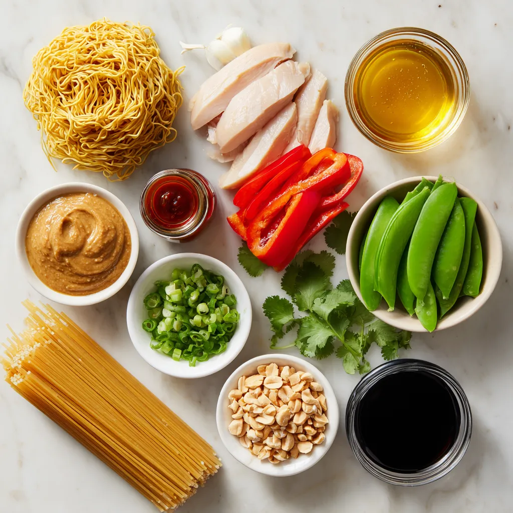To make this dish, you need the main ingredients first. Ramen noodles serve as the base. They cook fast and soak up flavors well. Chicken breasts add protein and richness. Snap peas and red bell pepper bring crunch and color. Each ingredient plays a key role in the overall taste and texture.
