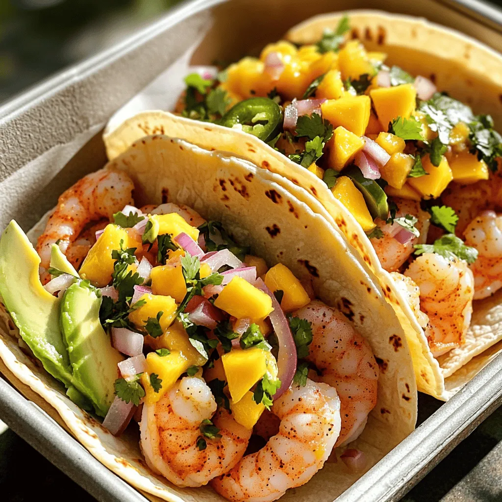 To store leftover tacos, keep each part separate. Place the shrimp, tortillas, and mango salsa in airtight containers. This will help keep everything fresh. Store them in the fridge for up to three days. When you want to eat them, it’s best to reheat the shrimp.