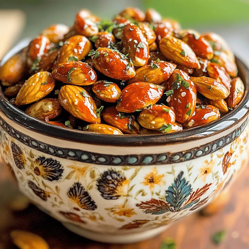 When serving, use a colorful bowl to show off your spicy almonds. You can add a few fresh herbs on top for a nice touch. This makes your snack look more appealing.