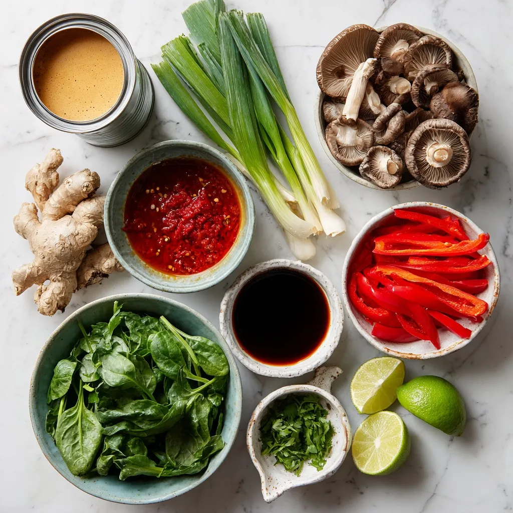 These ingredients create a rich and creamy base for the soup. The coconut milk gives it a smooth texture. The vegetable broth adds depth. Red curry paste brings heat and flavor. Fresh veggies add crunch and color.