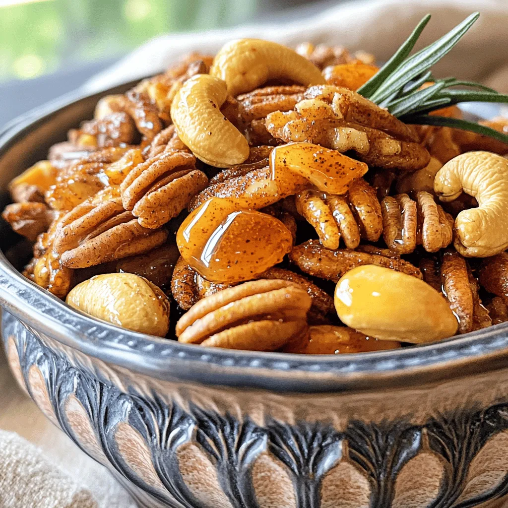 Serve the roasted nuts in a bright bowl or on a wooden platter. This adds a fun touch to your snack table. You can reinforce flavors with garnishes like fresh herbs. Sprigs of rosemary or thyme make a beautiful and tasty addition. For an extra kick, drizzle a bit of honey on top before serving.