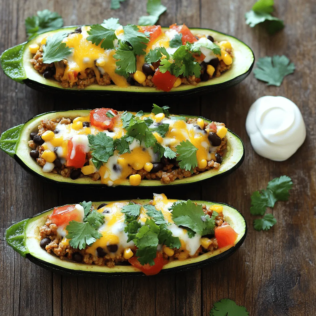 These ingredients create a flavorful and healthy meal. The zucchini acts as a perfect vessel for the filling. Ground turkey or chicken provides lean protein. Black beans and corn add texture and nutrients. Diced tomatoes bring moisture and flavor. Taco seasoning and cumin enhance the taste, making each bite enjoyable.