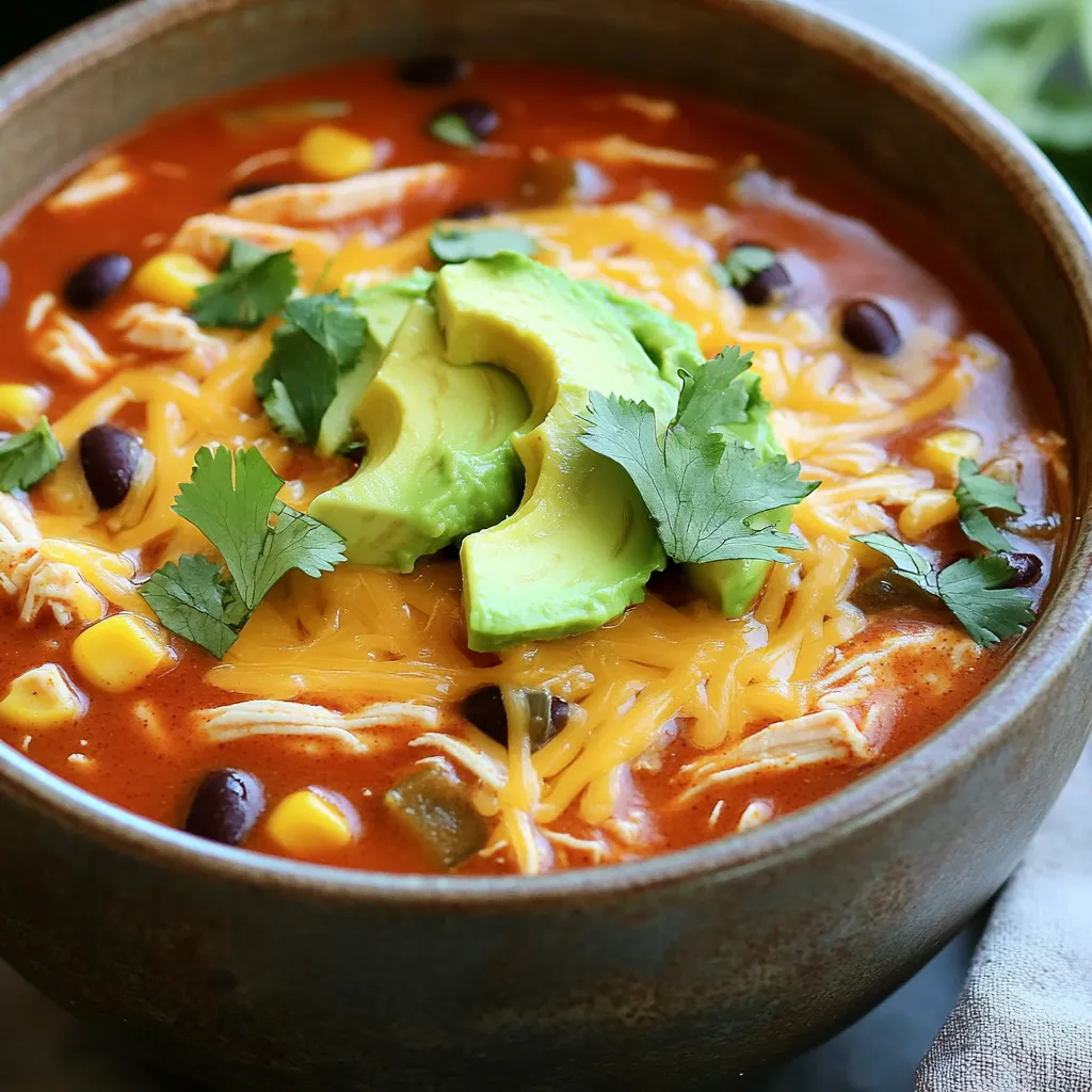 Toppings can elevate your soup to the next level. I love adding shredded cheese on top. Cheddar or a Mexican blend works great. Fresh cilantro adds a pop of color and freshness. Avocado slices are also a must. They bring creaminess and balance the spices. You can even add sour cream for extra richness! Feel free to mix and match your toppings to find your favorite.