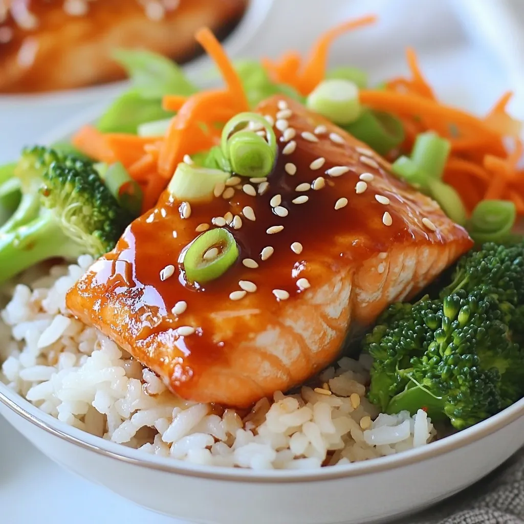 Try this delicious teriyaki salmon recipe for a quick and nutritious meal! These salmon rice bowls combine marinated, flaky salmon with vibrant broccoli and shredded carrots served over fluffy jasmine rice. Perfect for a healthy seafood dinner that's easy to prepare in just an hour. Elevate your dinner game with this delightful dish! Save this recipe for your next meal inspiration! #TeriyakiSalmon #SalmonRiceBowls #EasySeafoodDinner #HealthySalmonDishes