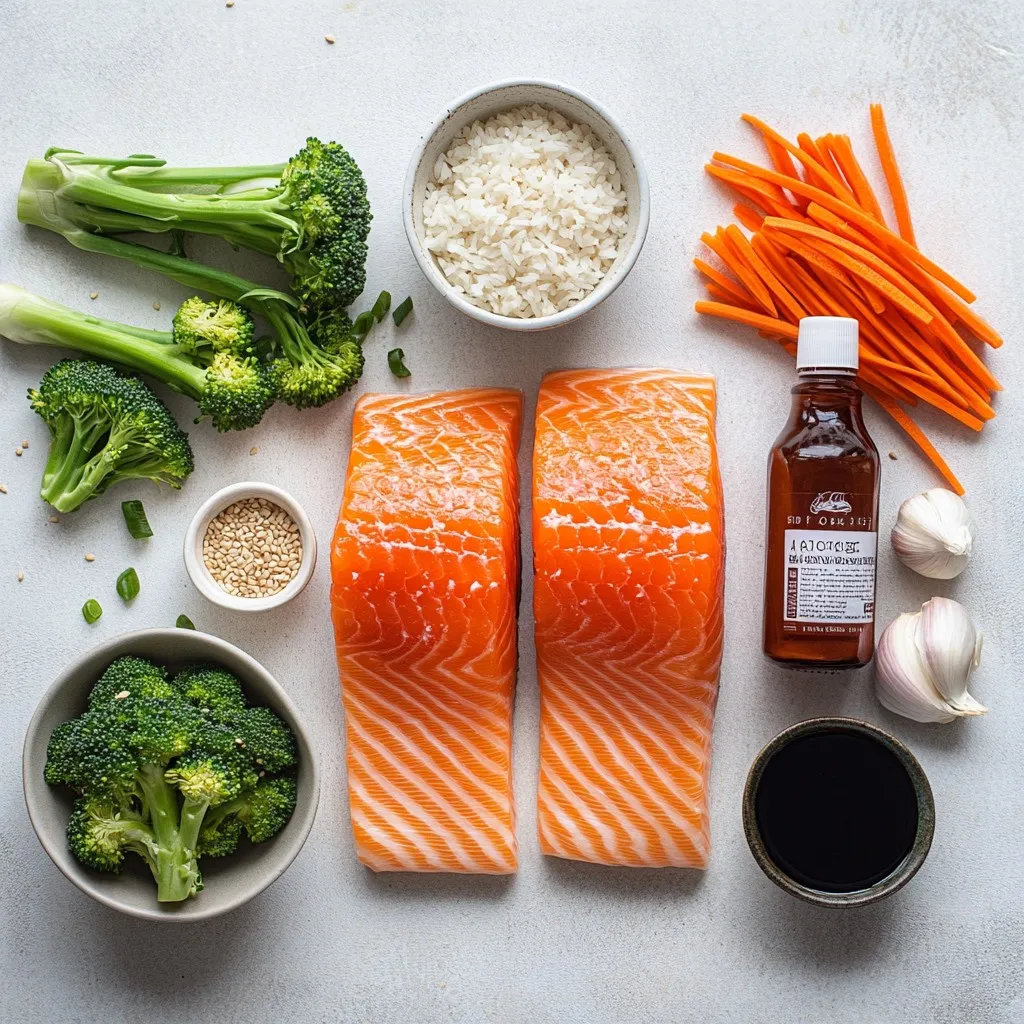 For my Teriyaki Salmon Bowls, I use fresh salmon fillets. They add a rich flavor and good fats. I soak them in a special marinade. The marinade has soy sauce, brown sugar, sesame oil, ginger, and garlic. This mix gives the salmon a sweet and savory taste.