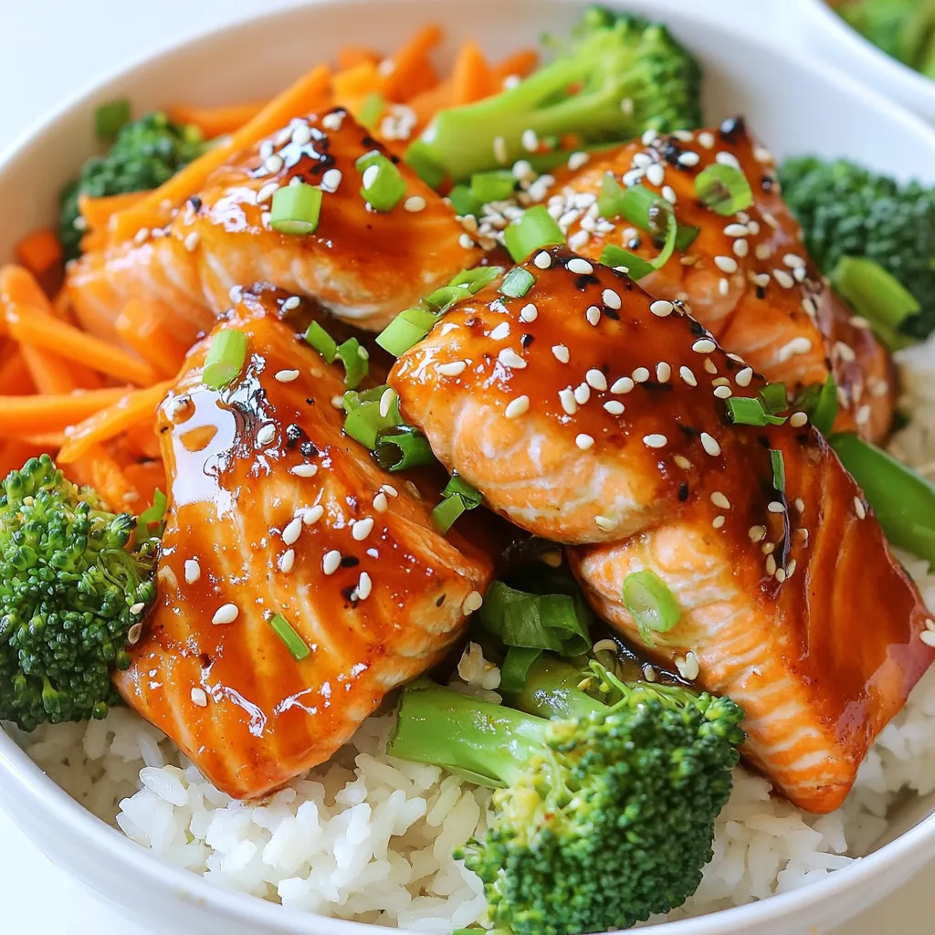 Finally, don’t forget the garnishes! Green onions and sesame seeds make the dish pop. They add flavor and a nice texture. With these simple ingredients, your Teriyaki Salmon Rice Bowls will impress anyone you serve.