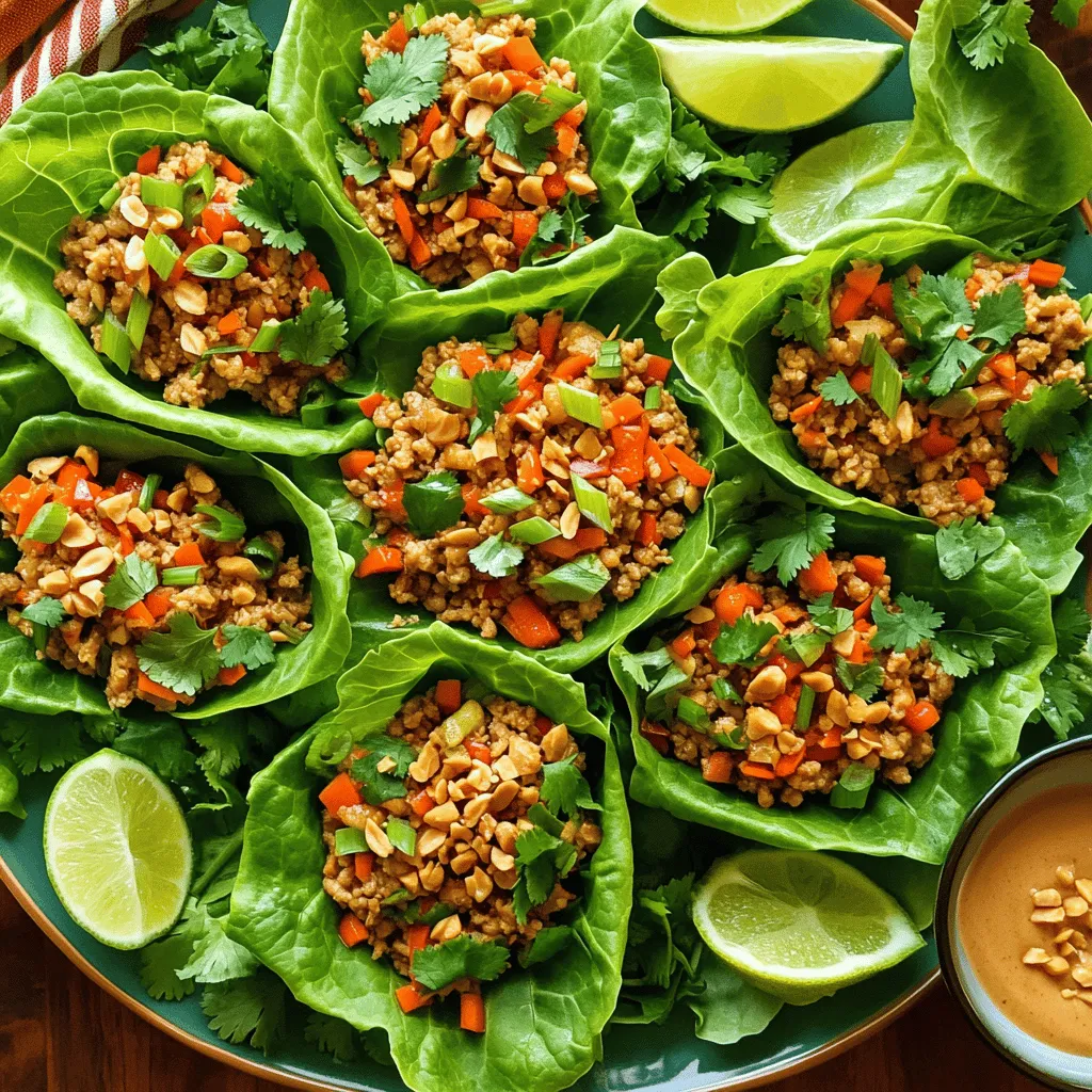 Serve your lettuce wraps on a large platter. Lay out lime wedges for a fresh touch. Add a small bowl of extra peanut sauce for dipping. This makes the dish look great and lets everyone customize their wraps.