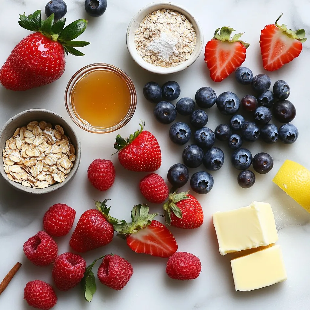 These ingredients build the crisp topping and enhance the berry flavor. The oats create a hearty texture, while the sugar and cinnamon add warmth.