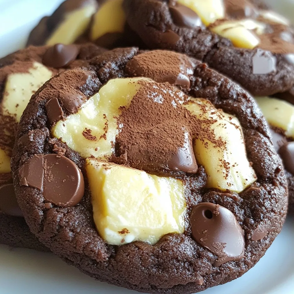 - 1 cup unsalted butter, melted - 1 cup brown sugar - 1/2 cup granulated sugar - 2 large eggs - 1 tablespoon vanilla extract - 1 cup all-purpose flour - 1/3 cup unsweetened cocoa powder - 1/2 teaspoon baking powder - 1/4 teaspoon salt - 1 cup semi-sweet chocolate chips - 1/2 cup white chocolate chips - 1/2 cup dark chocolate chunks Using high-quality cocoa powder makes a big difference. Look for brands with rich flavor. You can also try different types of chocolate for new tastes. Semi-sweet chocolate is classic, but dark chocolate adds depth. If you need to avoid gluten, swap all-purpose flour for a gluten-free blend. Always check labels to ensure they meet your needs. {{ingredient_image_1}} To start, preheat your oven to 350Β°F (175Β°C). This step is key for even baking. Next, line a baking sheet with parchment paper. This helps prevent sticking, making cleanup easy. In a large bowl, whisk together the melted butter, brown sugar, and granulated sugar. Mix until smooth. Then, add the eggs one at a time, mixing well after each. Don’t forget the vanilla extract; it adds great flavor! Now, take another bowl to sift the dry ingredients. Combine the flour, cocoa powder, baking powder, and salt. Gradually mix these dry ingredients into your wet mixture. Be careful not to over-mix. This keeps your cookies soft and chewy. When combining the ingredients, fold in the chocolate chips. Use semi-sweet, white chocolate, and dark chocolate chunks. This mix gives the cookies their rich flavor. Use a cookie scoop or tablespoon to drop balls of dough onto the prepared baking sheet. Remember to leave about 2 inches between each cookie. Bake your cookies in the preheated oven for 10-12 minutes. Look for edges that are set while the centers should be soft. This is a good sign! After baking, let them cool on the sheet for 5 minutes. Then, transfer them to a wire rack. This helps them cool completely and keeps them from getting soggy. Enjoy your delicious triple chocolate brownie cookies! To get the perfect texture in your Triple Chocolate Brownie Cookies, focus on the balance between chewy and cakey. If you want chewy cookies, use less flour. For cakey cookies, add a bit more flour. Adjusting bake time also helps. Bake for 10 minutes for softer cookies. Check them; the edges should be set, but the middle should still look soft. To boost the rich chocolate flavor, add a teaspoon of espresso powder. This small amount makes a big difference. You can also experiment with different types of chocolate. Try using dark chocolate for a more intense taste. Mixing semi-sweet and milk chocolate offers a nice blend of flavors. Avoid overbaking your cookies. If you leave them in too long, they become dry. The centers should look soft when you take them out. Underbaking can also be a problem. If they are too soft when you remove them, let them rest on the pan for a few minutes. Mixing cold ingredients can lead to uneven baking. Always use room temperature eggs and butter for the best results. Pro Tips Chill the Dough: For thicker cookies, chill the dough for at least 30 minutes before baking. This helps prevent spreading and enhances flavor. Use Quality Chocolate: Opt for high-quality chocolate chips and chunks for richer flavor and better texture in your cookies. Monitor Baking Time: Keep an eye on your cookies as they bake. Remove them when the edges look set but the centers are still soft for a fudgy texture. Experiment with Mix-ins: Feel free to customize your cookies by adding nuts, dried fruit, or different types of chocolate to suit your taste. {{image_2}} You can make these cookies even more exciting! Adding nuts gives a nice crunch. Try walnuts or pecans for a rich flavor. Dried fruit adds a sweet touch, too. Chopped cherries or cranberries work well. You can also spice things up. Adding a pinch of cinnamon enhances the chocolate taste. It adds warmth without being overpowering. Want a vegan version? Swap the eggs for flaxseed meal. Mix 1 tablespoon of flaxseed with 2.5 tablespoons of water. Let it sit for five minutes to thicken. Replace the butter with coconut oil or vegan butter. Use dairy-free chocolate chips for a fully vegan treat. If you're gluten-free, choose gluten-free flour blends. These options keep the cookies tasty and fun. Make these cookies shine for special occasions! Add decorative toppings like melted chocolate or sprinkles. You can drizzle some melted chocolate on top for flair. Serve them with a scoop of vanilla ice cream for a treat. Arrange the cookies nicely on a platter. A touch of fresh mint leaves adds color and freshness. These simple ideas make your cookies look and taste great! To keep your triple chocolate brownie cookies fresh, store them at room temperature. Place them in an airtight container. This method helps maintain their soft and chewy texture. If you want to save some for later, freeze the cookie dough or the baked cookies. To freeze the dough, scoop out your cookie balls and place them on a baking sheet. Freeze until solid, then transfer them to a freezer bag. This way, you can bake fresh cookies anytime you crave them. For baked cookies, let them cool completely before freezing. Wrap each cookie in plastic wrap and place them in a freezer bag. They stay fresh for up to three months in the freezer. These cookies stay fresh for about one week when stored at room temperature. If you freeze them, they can last for about three months. Look for signs that cookies have gone stale. If they feel hard or crumbly, they may be past their prime. Fresh cookies should feel soft and moist. If they lose that texture, it’s time to toss them out. - Can I use different types of chocolate? Yes, you can use different chocolates. Feel free to swap semi-sweet for milk chocolate or use all dark chocolate. You can even add fun flavors, like mint or orange. - How do I store my cookies to keep them soft? Store cookies in an airtight container. You can add a slice of bread to keep them moist. 