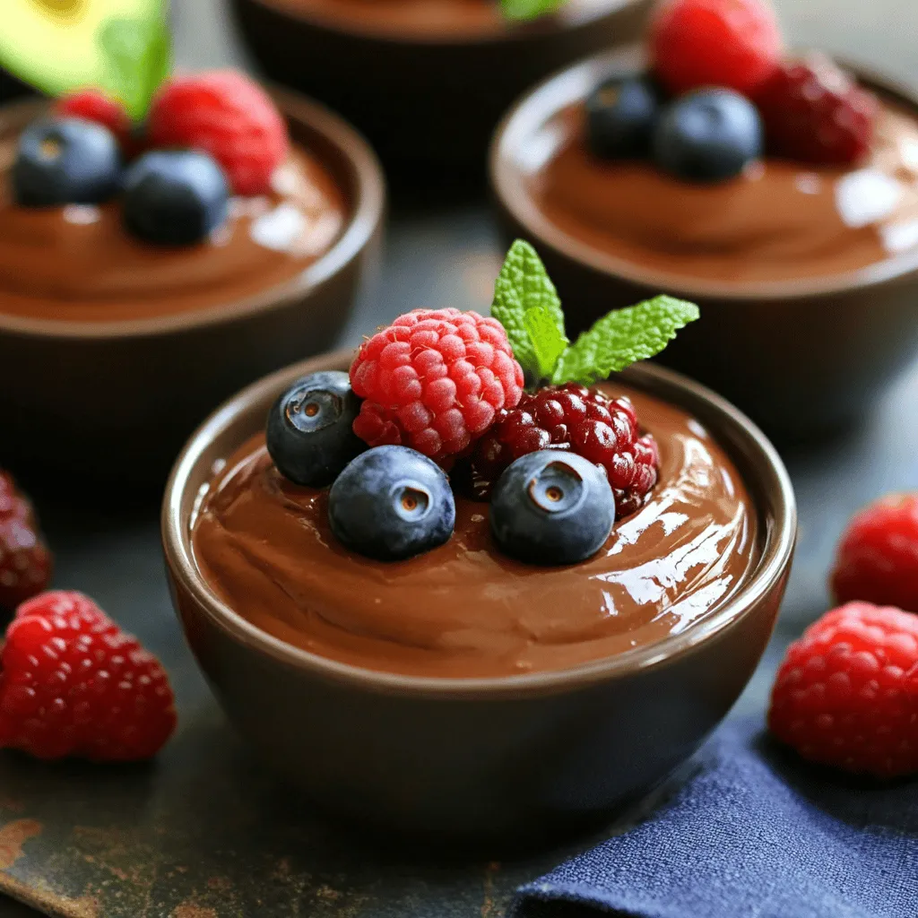 Gathering the right ingredients is key to making this vegan avocado chocolate pudding. Use ripe avocados for the best creamy texture. Look for avocados that yield slightly when you press them. The cocoa powder brings rich chocolate flavor, while maple syrup adds sweetness. You can adjust the syrup to suit your taste. Almond milk keeps it plant-based, but feel free to swap it with any milk you prefer. Vanilla extract adds a warm note, and sea salt enhances all the flavors. Don’t forget the optional garnishes! Fresh berries and mint make your dish look and taste even better. You can find the complete recipe above for all the details!