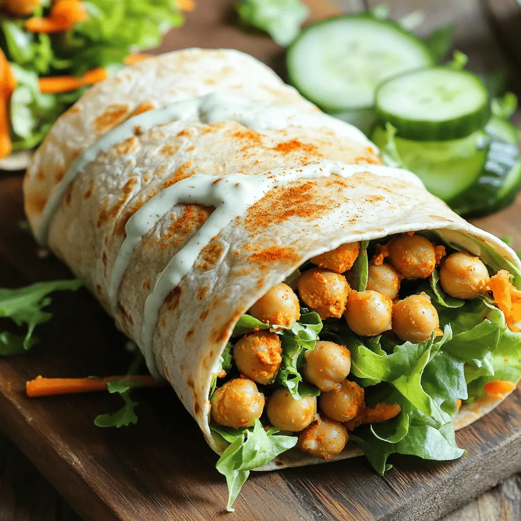 - 1 can (15 oz) chickpeas, drained and rinsed - 1/4 cup hot sauce (adjust to taste) - 1 tablespoon olive oil - 1 teaspoon garlic powder - 1 teaspoon onion powder - 1/2 teaspoon smoked paprika - Salt and pepper to taste - 4 large whole wheat tortillas or wraps - 1 cup mixed greens (spinach, arugula, or lettuce) - 1/2 cup carrot, shredded - 1/2 cup cucumber, thinly sliced - 1/4 cup vegan ranch dressing (optional) Chickpeas are the star of this dish. They give a great base and pack protein. I usually use canned chickpeas because they save time. Rinsing them helps remove excess salt. You can also use fresh chickpeas if you prefer. Just cook them before mashing. Hot sauce adds that spicy kick we love. You can use any brand you like. I enjoy a classic buffalo sauce, but you can try sriracha for a twist. Adjust the amount based on your spice tolerance. Olive oil keeps everything moist. Garlic powder and onion powder bring flavor without being overpowering. Smoked paprika adds a nice depth. The whole wheat tortillas are healthy and sturdy. They hold all the fillings well. The mixed greens, carrots, and cucumbers add crunch and freshness. If you like creamy toppings, vegan ranch dressing is a great choice. It cools the heat from the hot sauce. You can skip it if you want fewer calories. For the full recipe, check the detailed instructions so you can enjoy these wraps at home. 1. Start with the chickpeas. Grab a medium bowl. Open your can of chickpeas, drain, and rinse them well. Use a fork or potato masher to mash the chickpeas. Aim for a slightly chunky texture. This adds a nice bite to your wraps. 2. Time to flavor the chickpeas! Add 1/4 cup of hot sauce, 1 tablespoon of olive oil, 1 teaspoon of garlic powder, 1 teaspoon of onion powder, and 1/2 teaspoon of smoked paprika to the bowl. Don’t forget to sprinkle in a bit of salt and pepper. Mix everything well until the chickpeas are fully coated. 3. Now, heat a non-stick skillet over medium heat. Once hot, add your chickpea mixture. Cook for about 5-7 minutes. Stir occasionally to ensure even heating. The goal is to warm the mixture and blend the flavors well. 4. While your chickpeas are cooking, prepare your wraps. Lay one large tortilla flat on a clean surface. 5. In the center of your tortilla, add a handful of mixed greens. You can use spinach, arugula, or any lettuce you like. Then, add a generous amount of shredded carrots and thin cucumber slices. 6. Spoon the buffalo chickpea mixture on top of the veggies. Make sure each wrap gets a good amount of that delicious filling. 7. If you want, drizzle some vegan ranch dressing over the chickpeas. It adds a creamy touch that pairs well with the spice. 8. Now, fold in the sides of your tortilla. Roll it up tightly from the bottom to form a wrap. 9. Repeat these steps for the remaining tortillas. 10. Finally, cut each wrap in half diagonally. Serve them right away for the best taste and freshness. Follow this full recipe and enjoy a tasty meal that’s easy to make! To get the best flavor from your Vegan Buffalo Chickpea Wraps, use good seasonings. Garlic powder, onion powder, and smoked paprika add depth. They enhance the chickpeas' taste and create a rich flavor. Start by mixing these spices well with the chickpeas. This step makes the flavors blend nicely. If you want more heat, adjust the hot sauce. Start with a small amount and add more until it suits your taste. You can also try different hot sauces. Some are milder, while others pack a punch. Choose one that fits your spice level. Proper tortilla folding is key for a secure wrap. Place the filling in the center of your tortilla. Fold in the sides first, then roll from the bottom up. This method keeps the filling inside and makes it easy to eat. If your wrap feels loose, it may fall apart. A tight roll keeps it together. For a complete guide on making these wraps, check the Full Recipe. {{image_2}} You can make this dish even more exciting by changing a few ingredients. Start with the greens. Instead of mixed greens, try kale or collard greens for a heartier bite. These options add vitamins and a nice crunch. You can also use shredded cabbage or bell peppers for a colorful twist. Next, consider the buffalo sauce. If you want a milder flavor, try using barbecue sauce or a sweet chili sauce. This change gives a different taste while still keeping it fun. You can even make your own sauce with vinegar, hot sauce, and spices for a personal touch. For a lighter wrap, swap out the vegan ranch dressing. You can use a squeeze of lemon juice or plain yogurt. Both add flavor without the extra calories. Experiment with these options to find what you love best. These changes keep your wraps fresh and fun. You can mix and match based on what you have at home. Enjoy the process and make the wraps your own! To keep your wraps fresh, store leftovers in an airtight container. This helps prevent them from drying out. You can place a damp paper towel in the container to maintain moisture. For reheating, use a microwave or a skillet. If using a microwave, heat for about 30 seconds. For the skillet, warm on medium heat for about 2-3 minutes on each side. This helps keep the wrap soft and warm. If you want to make these wraps ahead of time, freezing is a great option. Wrap each prepared wrap in plastic wrap, then place them in a freezer bag. They can last up to three months in the freezer. When ready to eat, thaw overnight in the fridge and reheat as mentioned before. By following these simple steps, you can enjoy your Vegan Buffalo Chickpea Wraps at their best! For the full recipe, check out the details above. To make vinegar-based buffalo sauce, mix equal parts hot sauce and vinegar. You can use apple cider vinegar or white vinegar. Add melted vegan butter for creaminess, if you wish. Taste the sauce and adjust the heat with more hot sauce. This mix gives a tangy kick that pairs well with chickpeas. Yes, you can make this recipe gluten-free easily. Use gluten-f