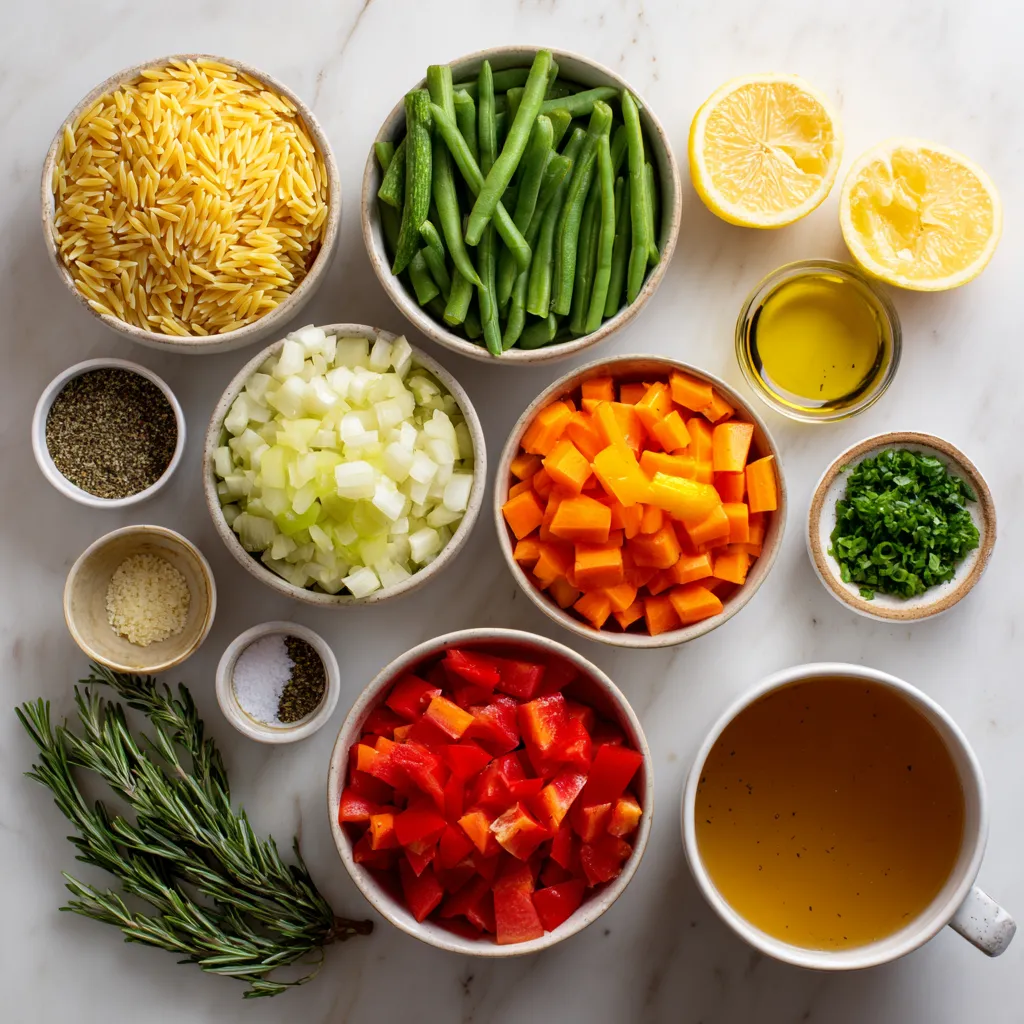 For a delicious bowl of Vegetable Orzo Soup, gather these key ingredients: