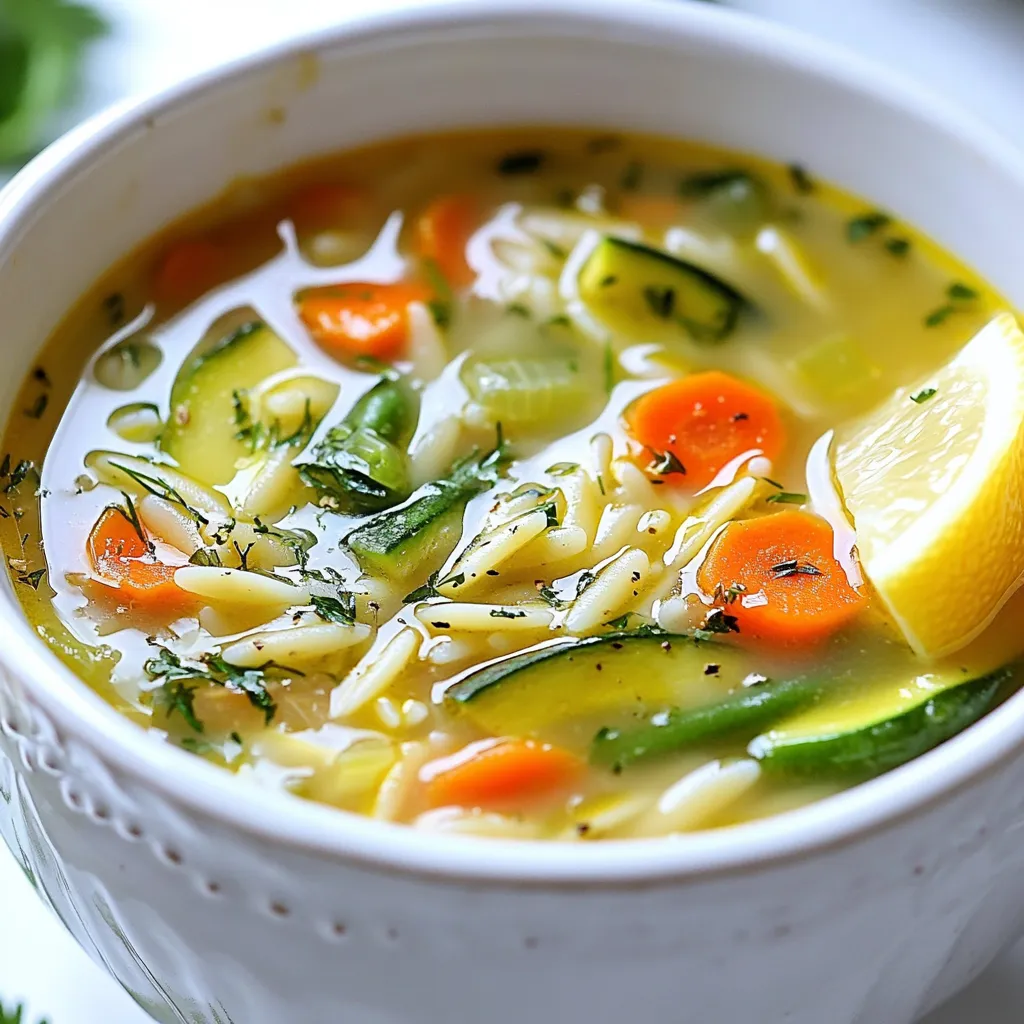 A comforting and nutritious soup packed with vegetables and orzo pasta.