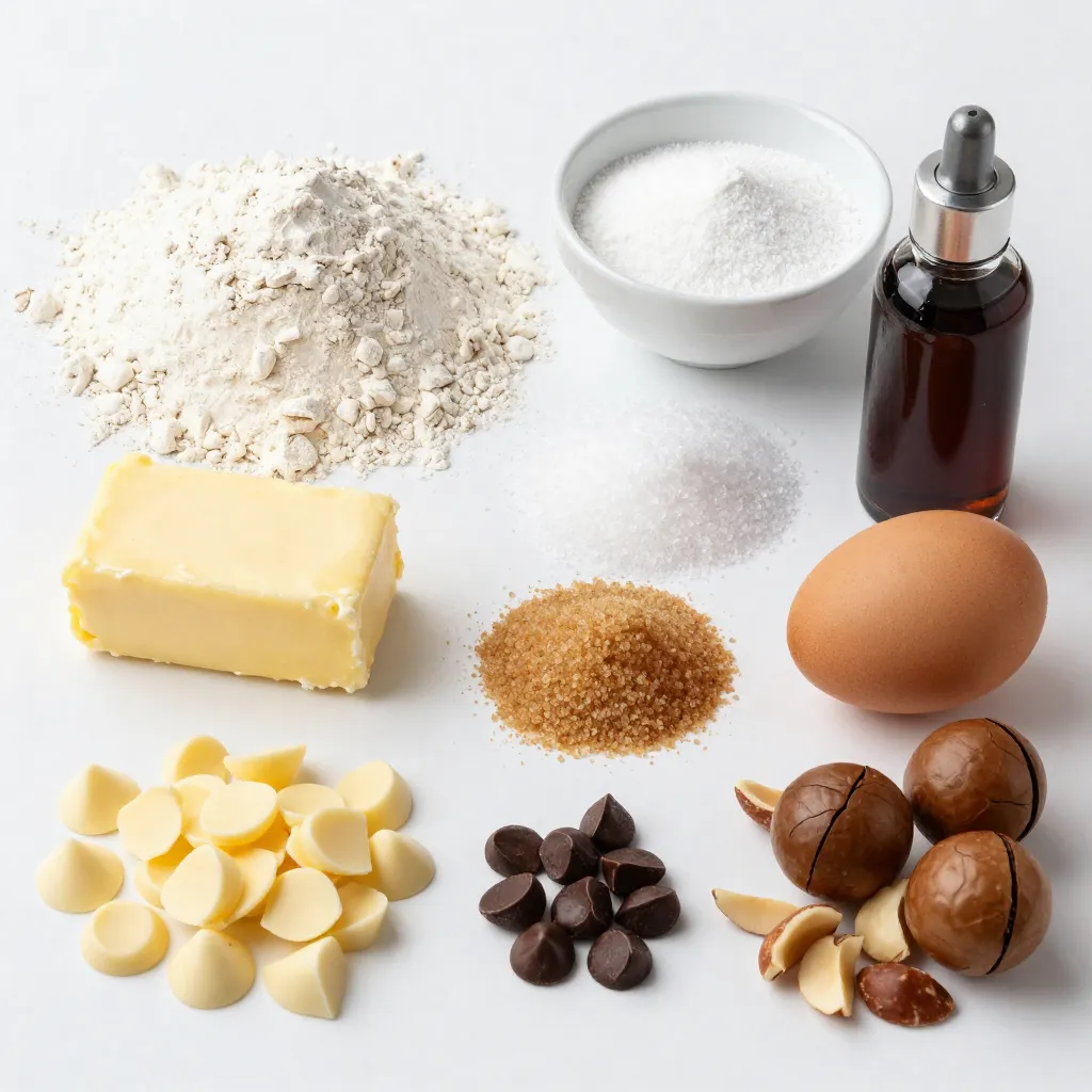 Keyword cookies, macadamia nuts, white chocolate