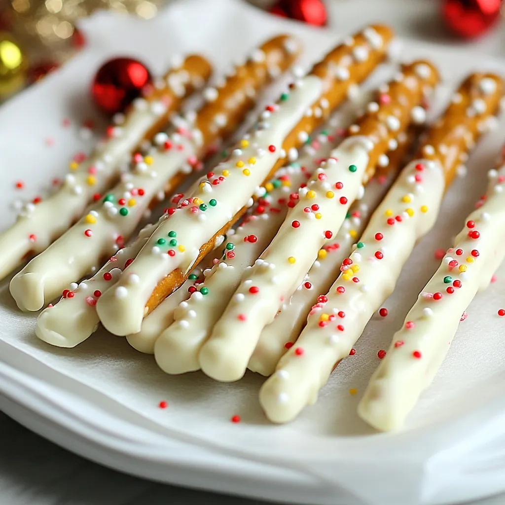 Keyword holiday treats, peppermint, pretzel rods, white chocolate